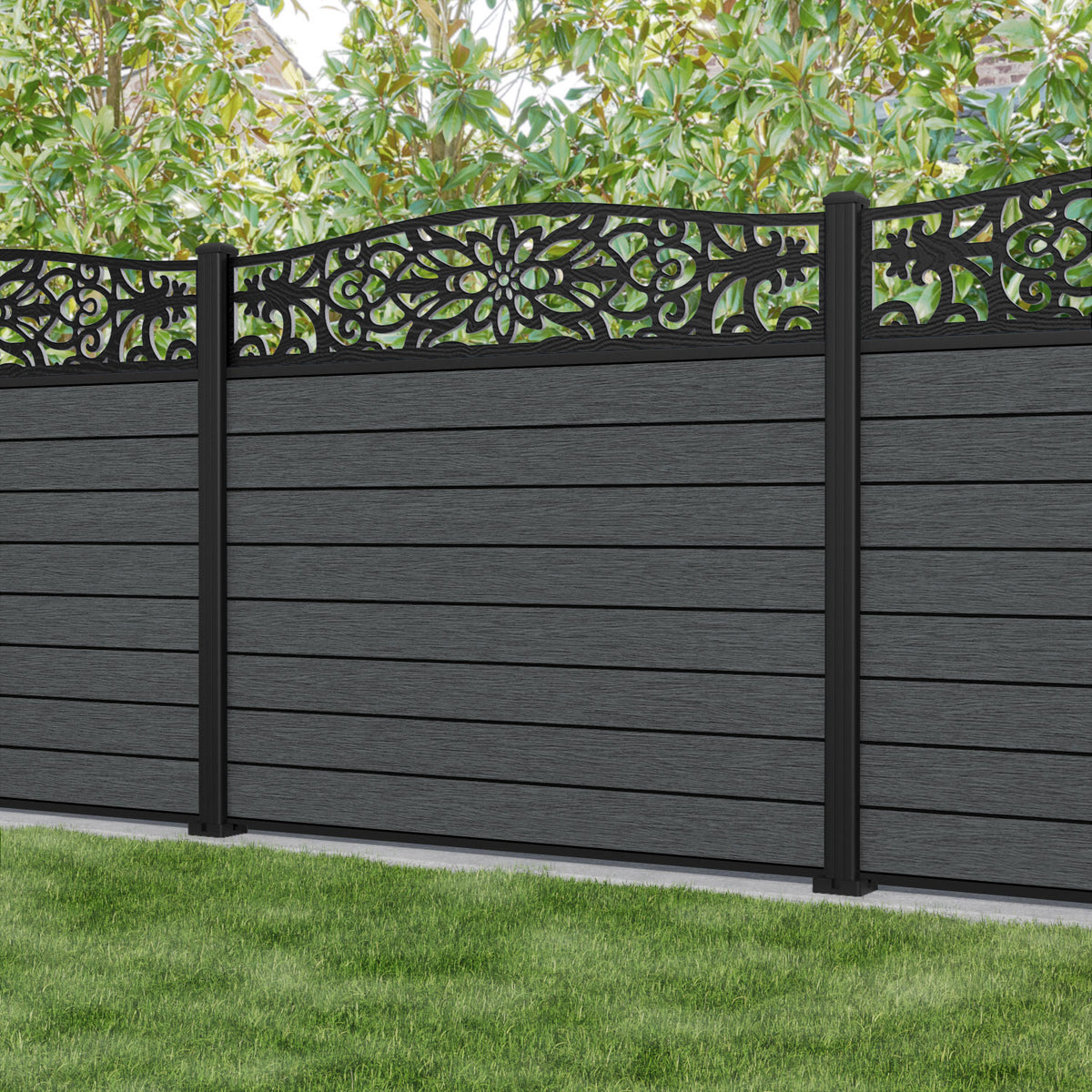Fusion Windsor Curved Top Fence Panel Dark Grey - with our aluminium posts