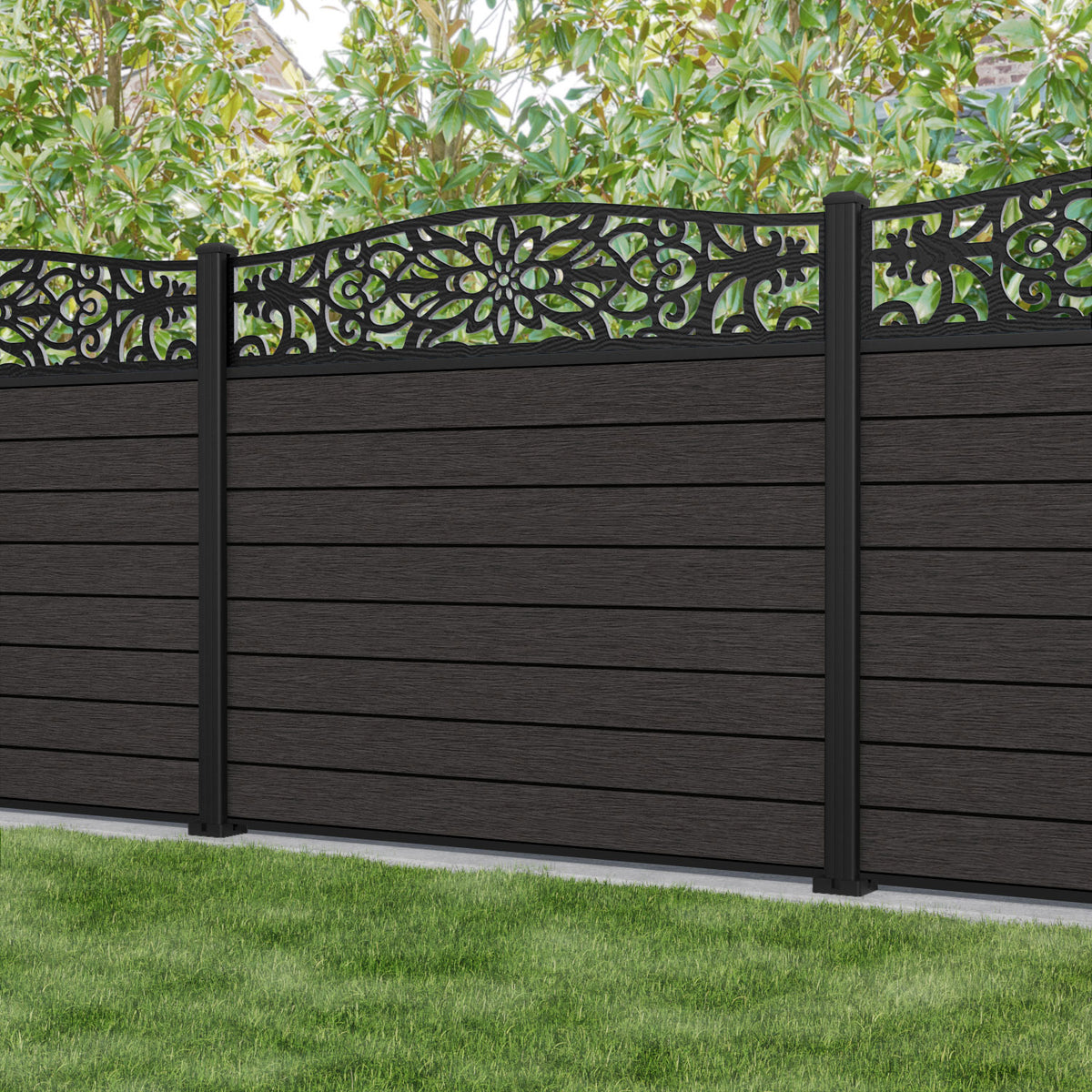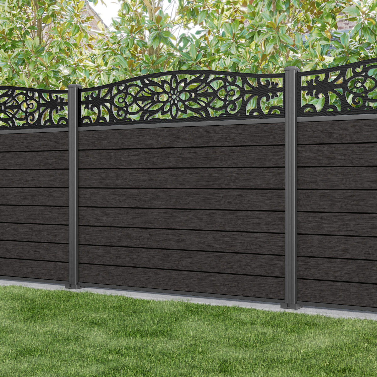 Fusion Windsor Curved Top Fence Panel Dark Oak - with our aluminium posts