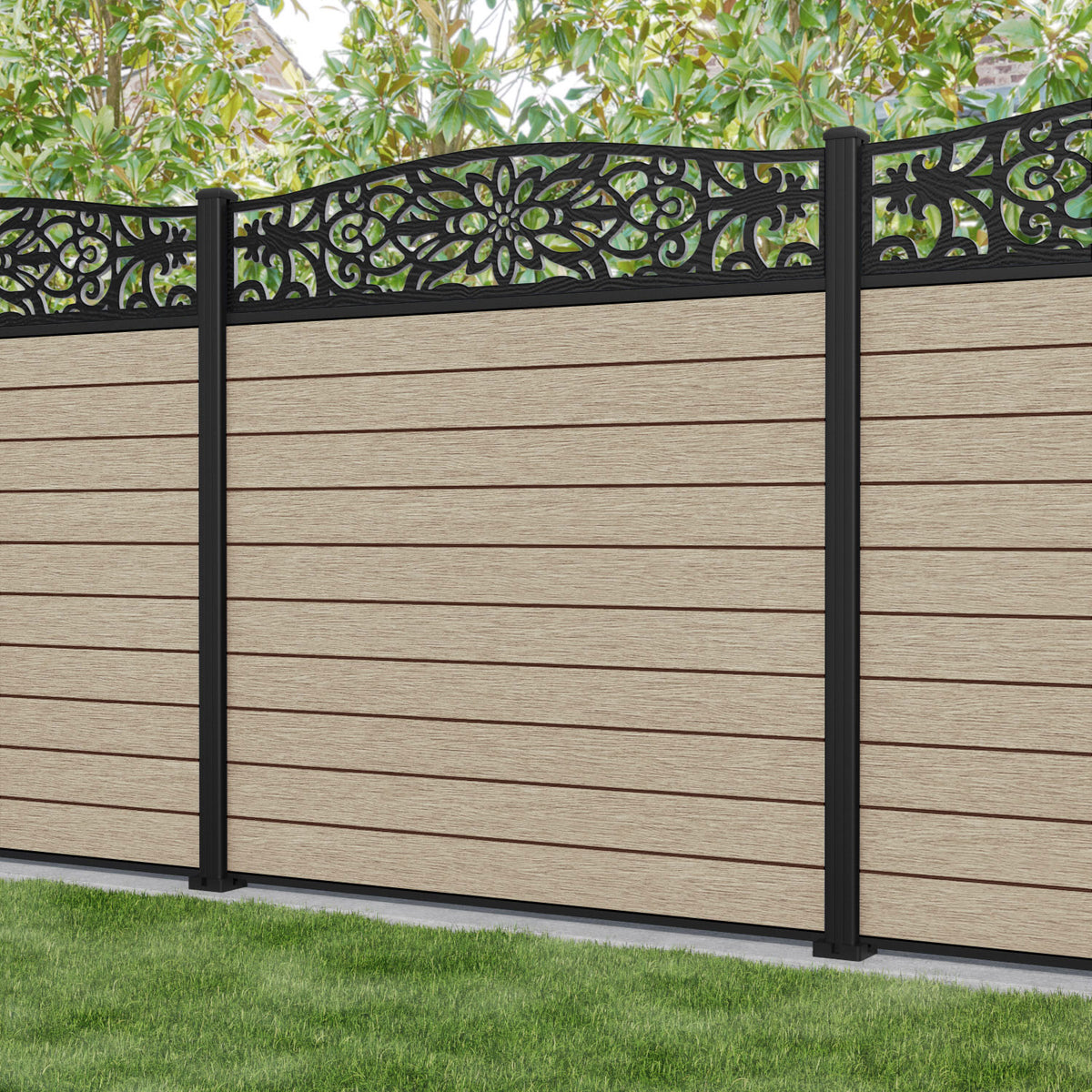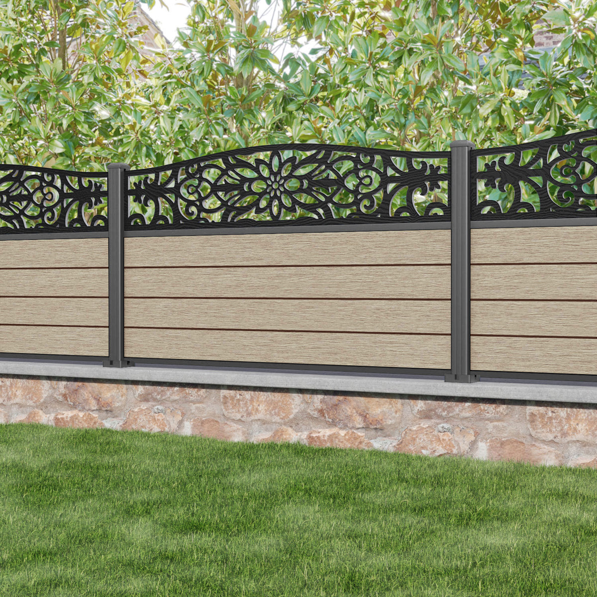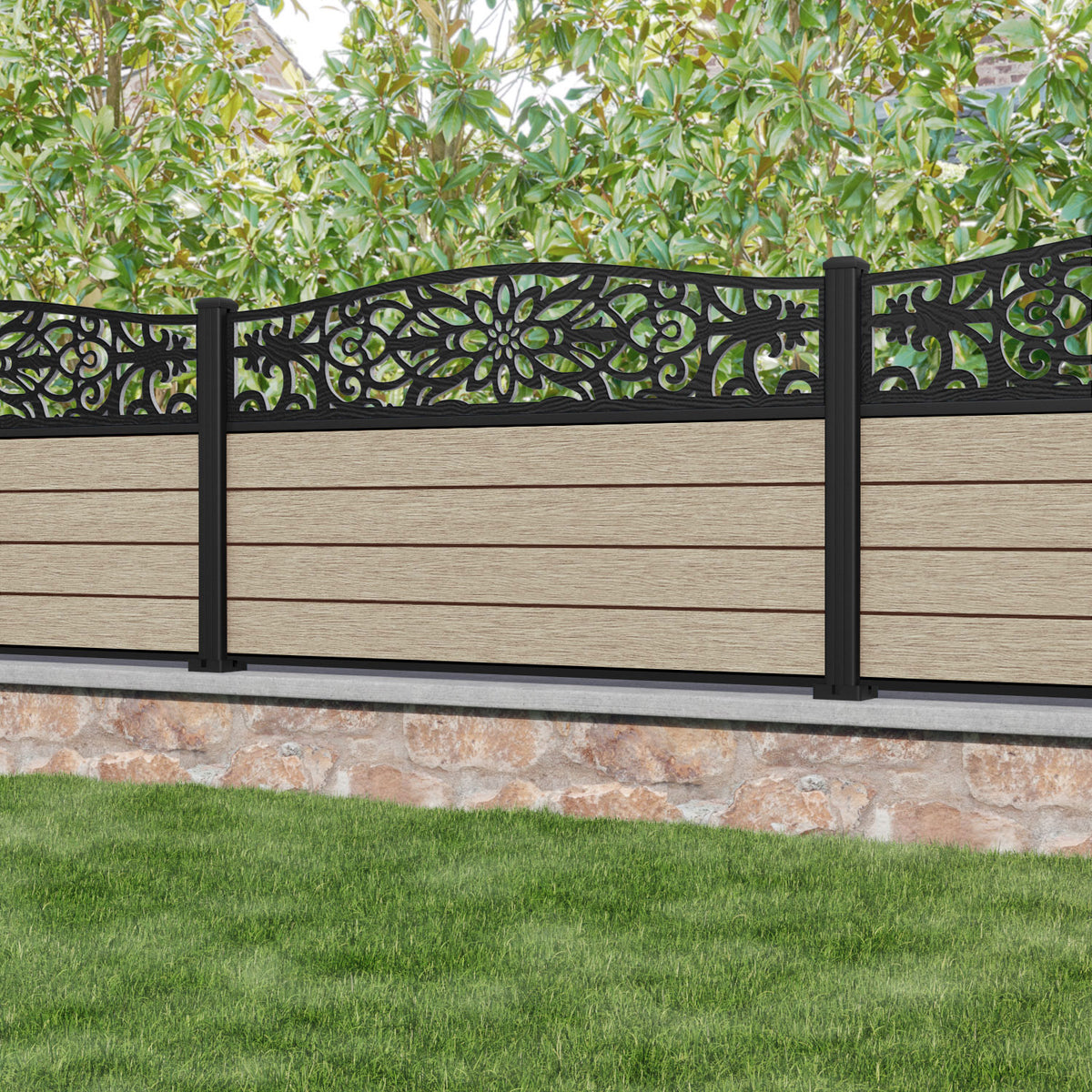 Fusion Windsor Curved Top Fence Panel Light Oak - with our aluminium posts