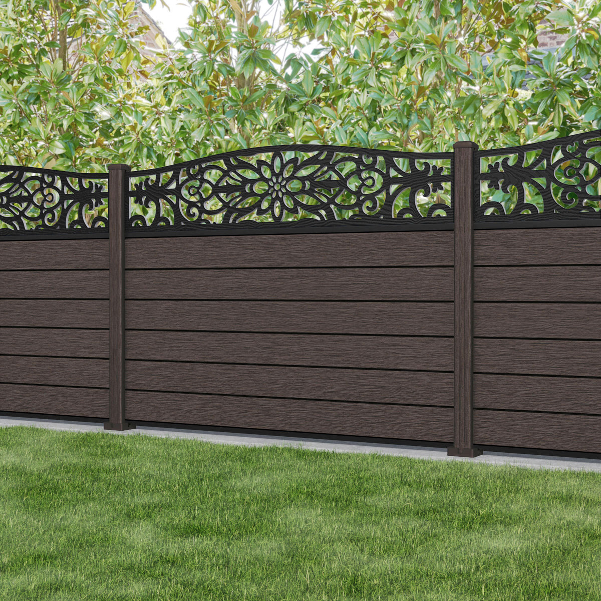 Fusion Windsor Curved Top Fence Panel Mid Brown - with our composite posts
