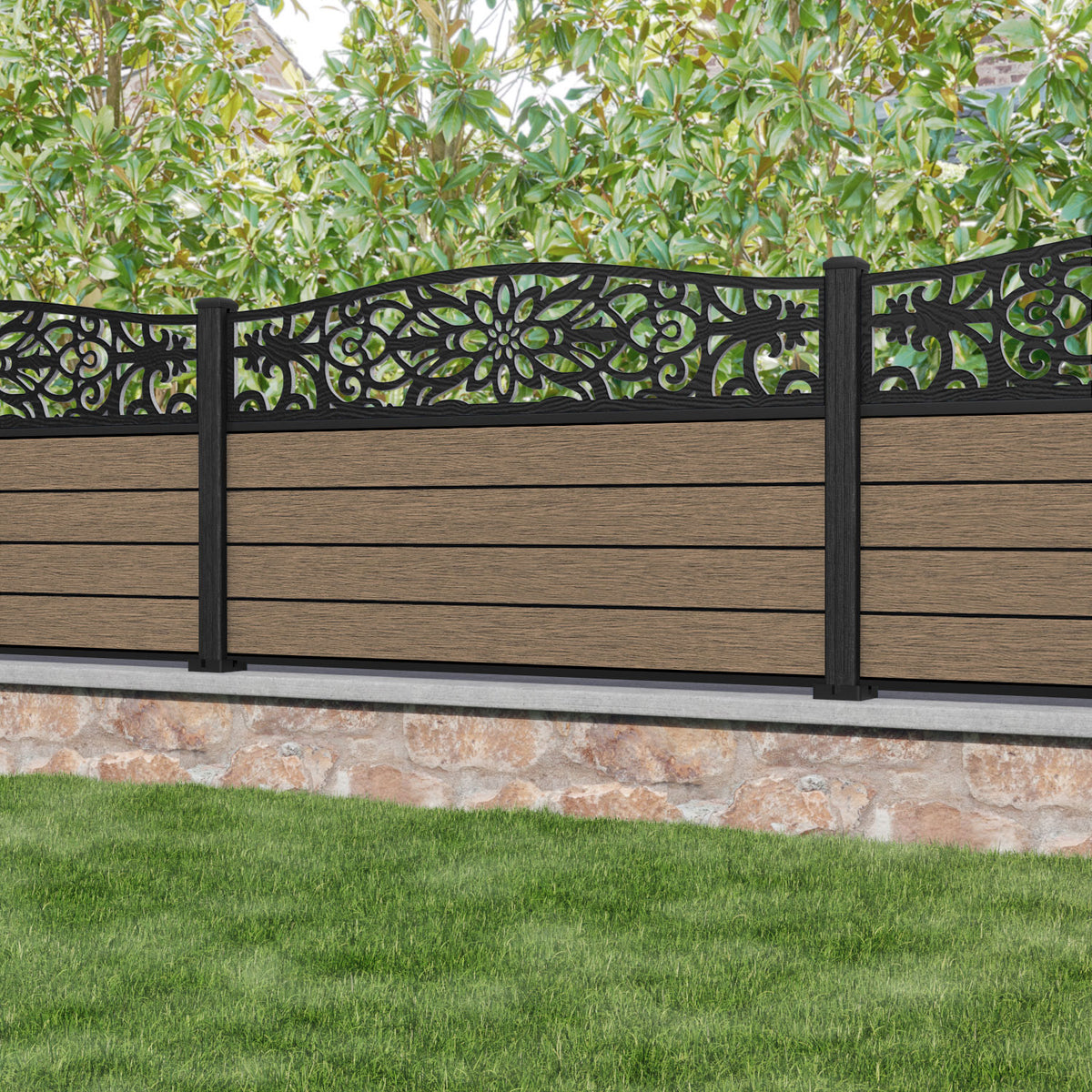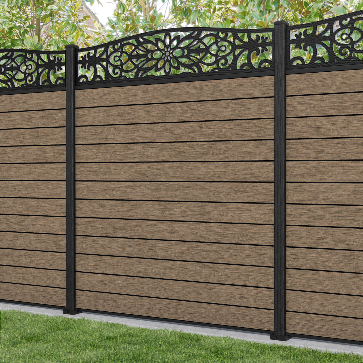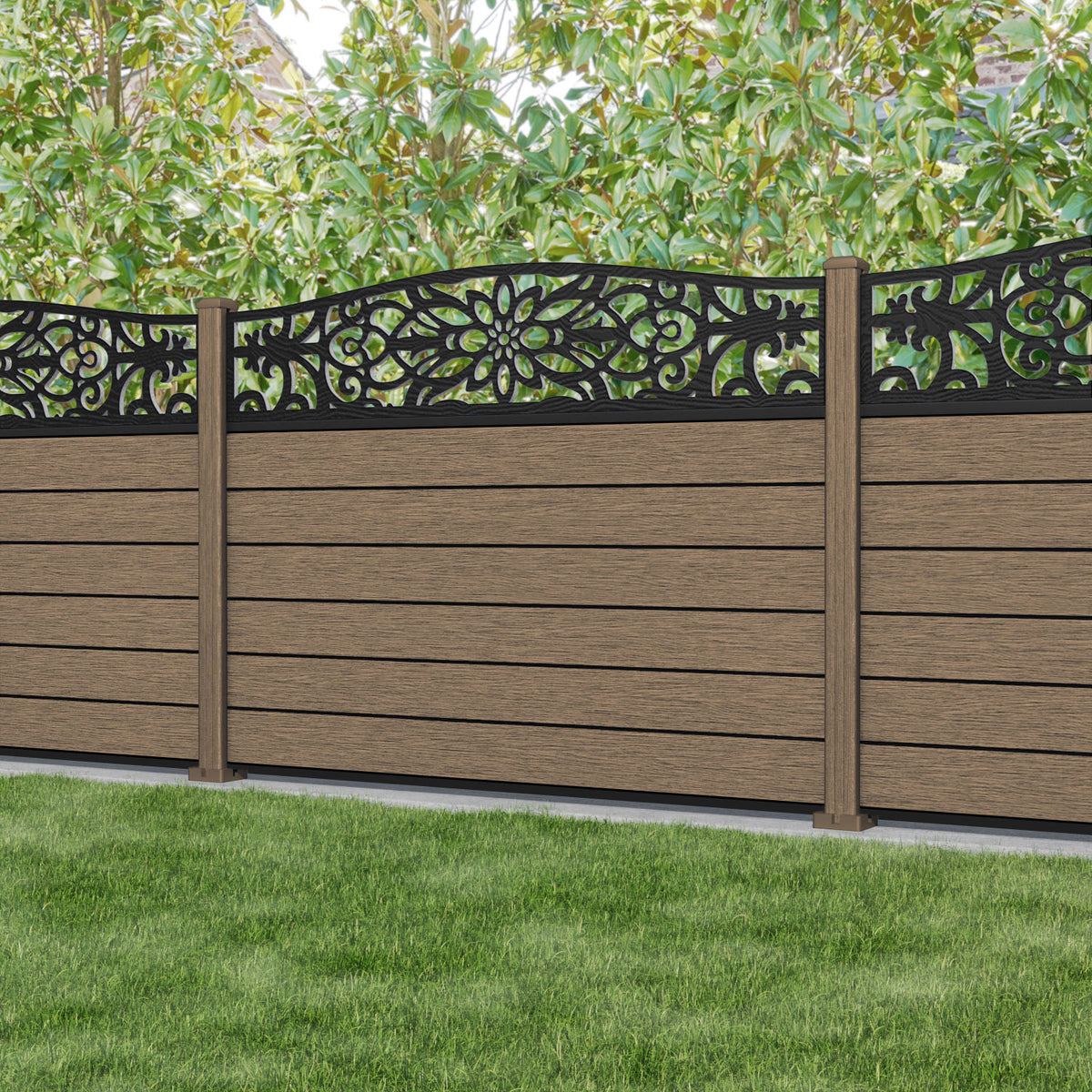 Fusion Windsor Curved Top Fence Panel Teak - with our composite posts