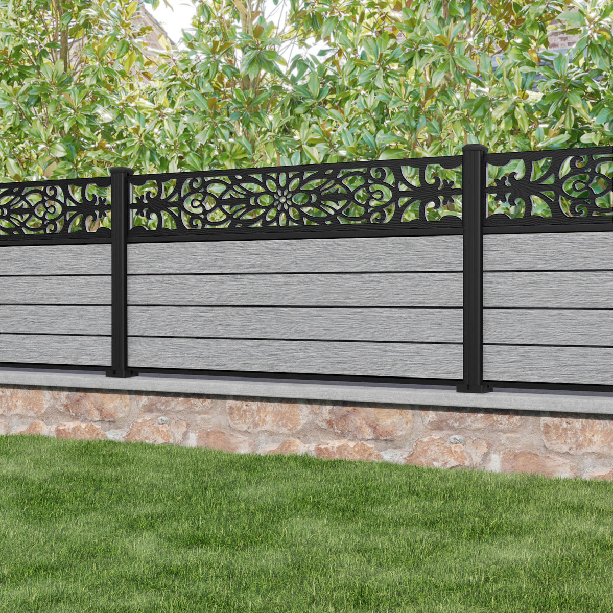 Fusion Windsor Fence Panel Light Grey - with our aluminium posts