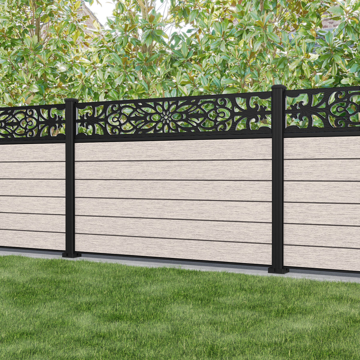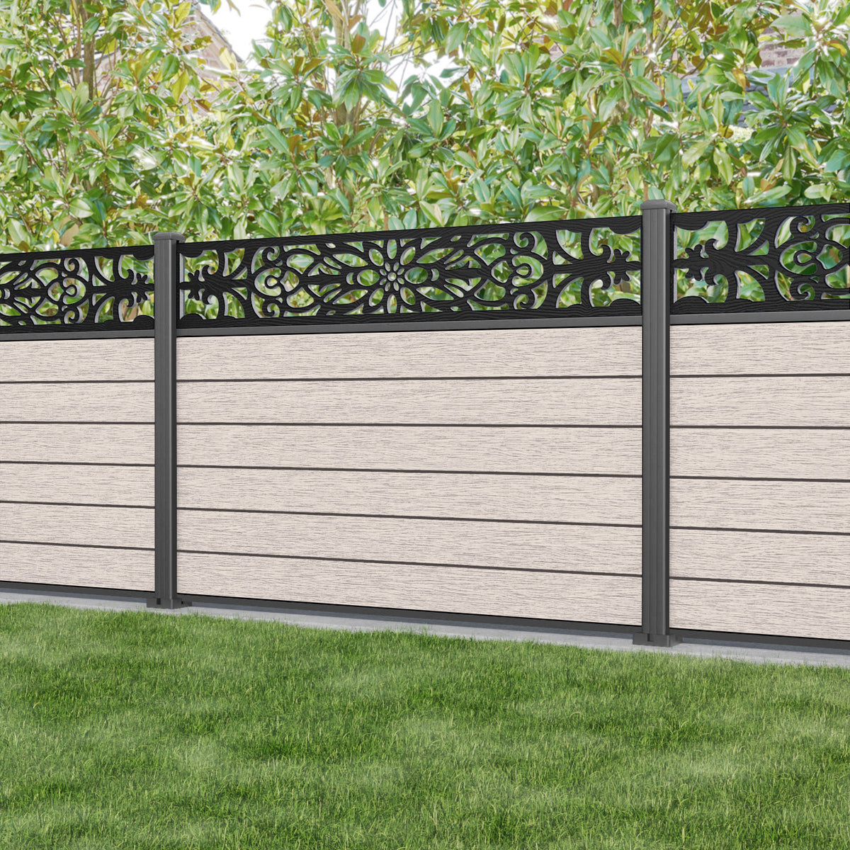 Fusion Windsor Fence Panel Mid Stone - with our aluminium posts