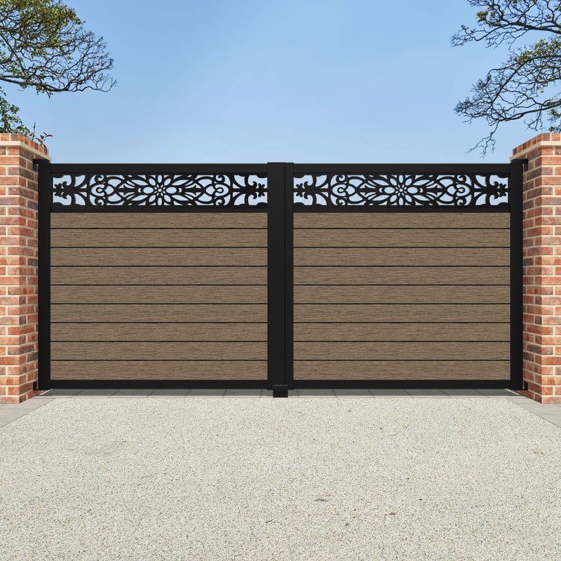 Fusion Windsor Straight Top Driveway Gate Teak - Top Screen