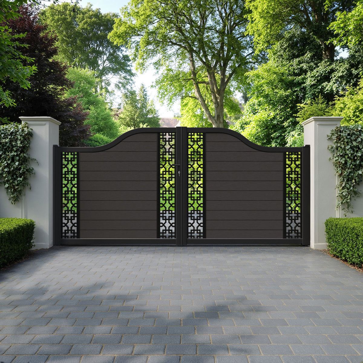 Fusion Zaria Curved Top Driveway Gate Dark Oak - Middle & End Screen
