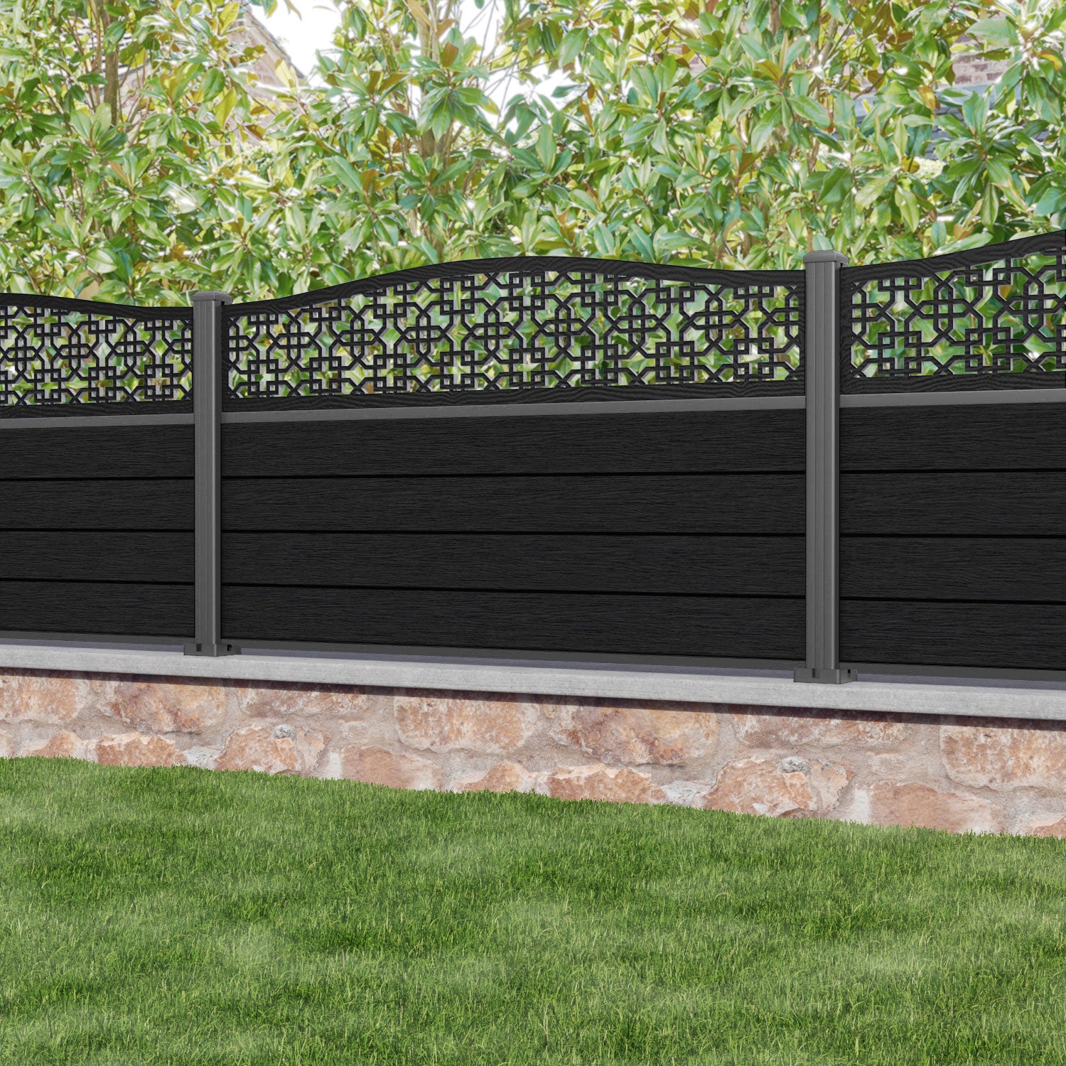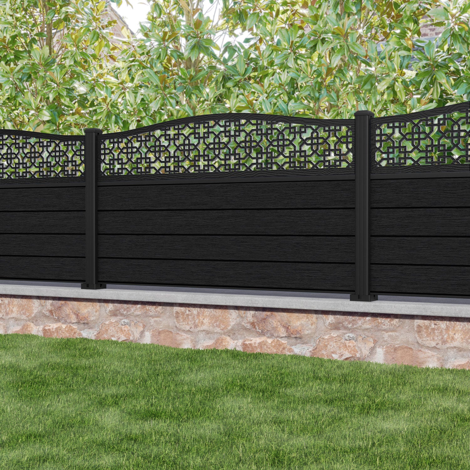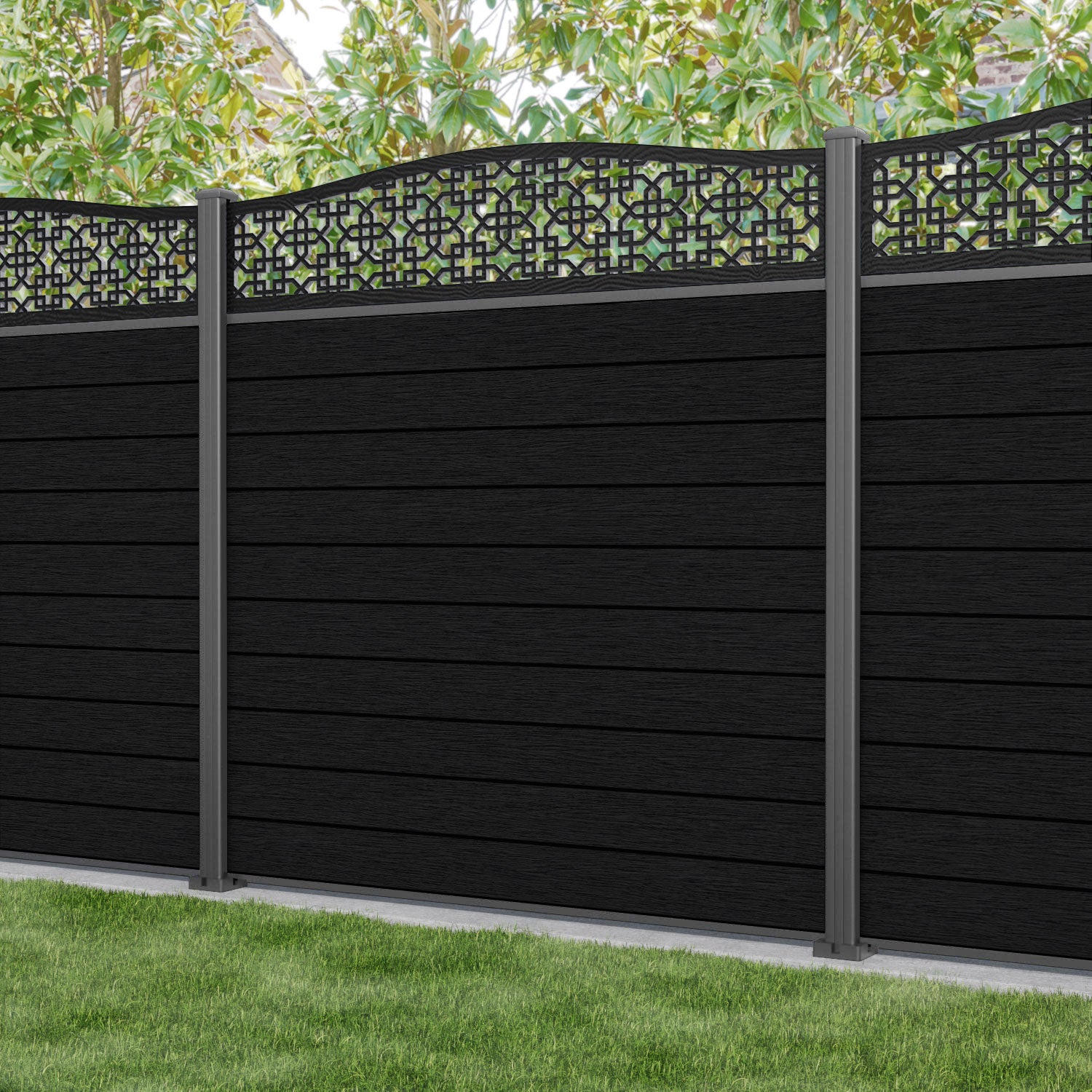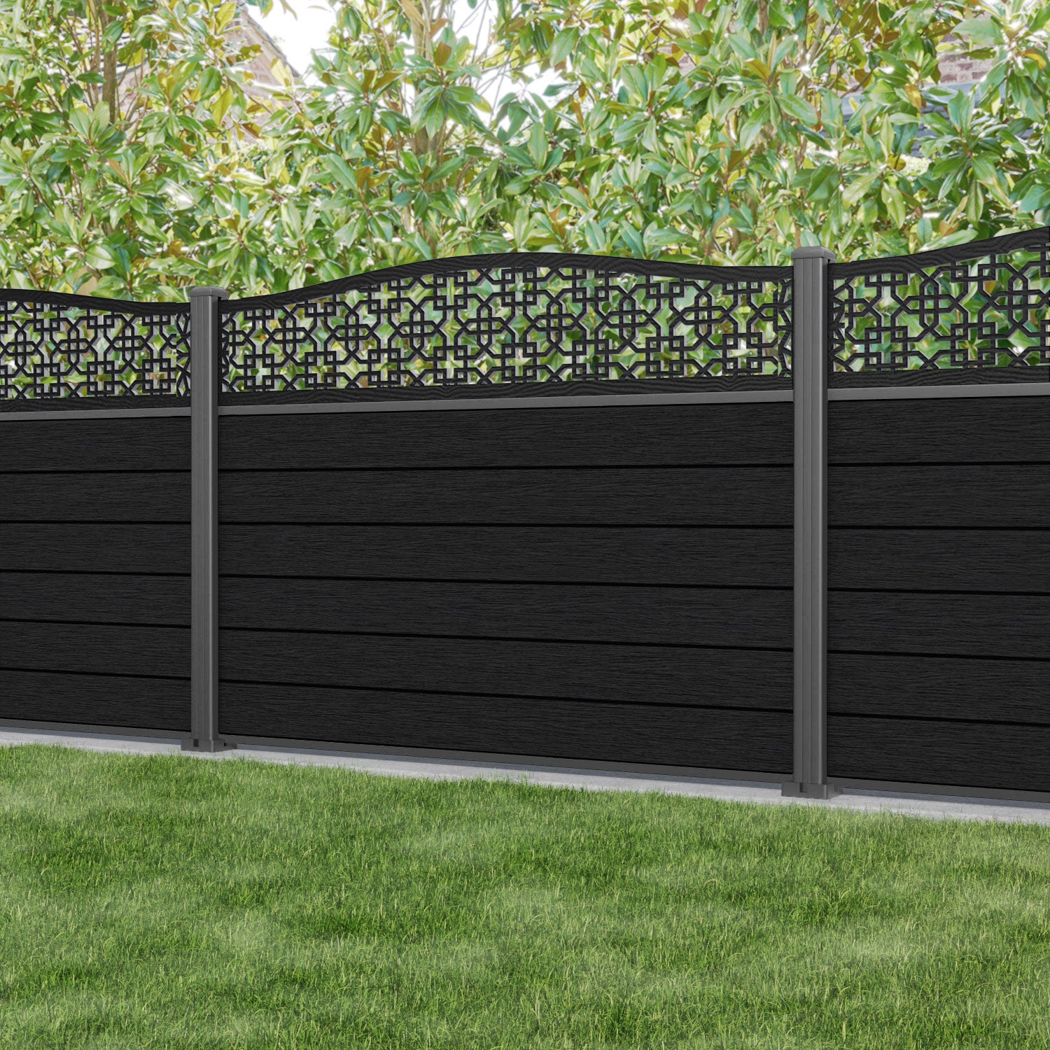 Fusion Zaria Curved Top Fence Panel Black - with our aluminium posts