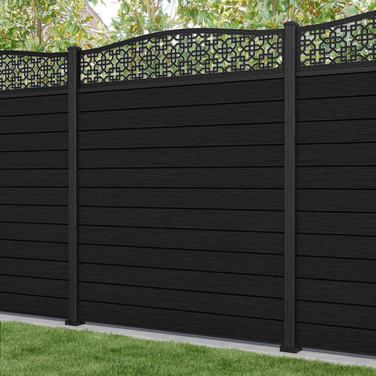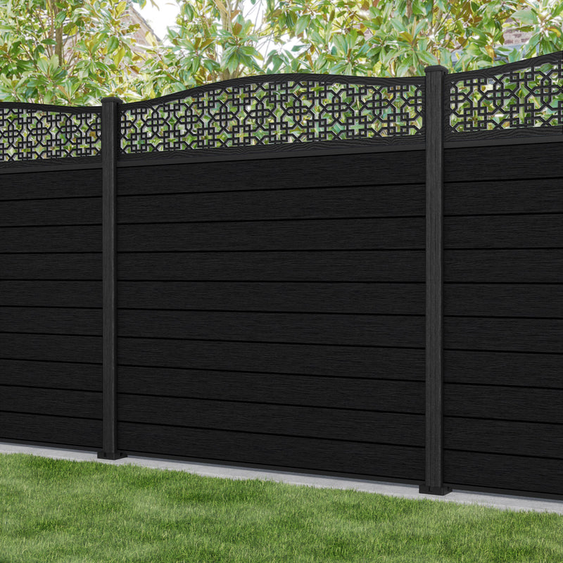 Fusion Zaria Curved Top Fence Panel Black - with our composite posts