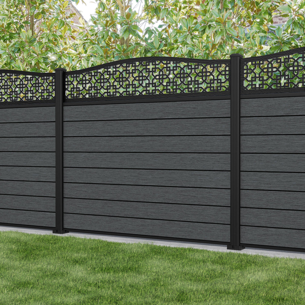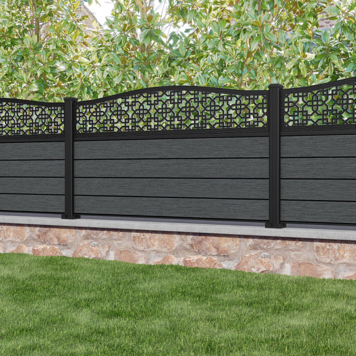 Fusion Zaria Curved Top Fence Panel Dark Grey - with our aluminium posts
