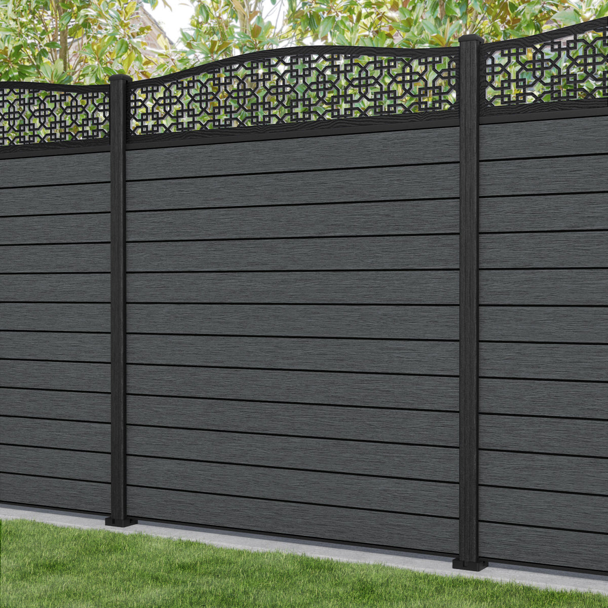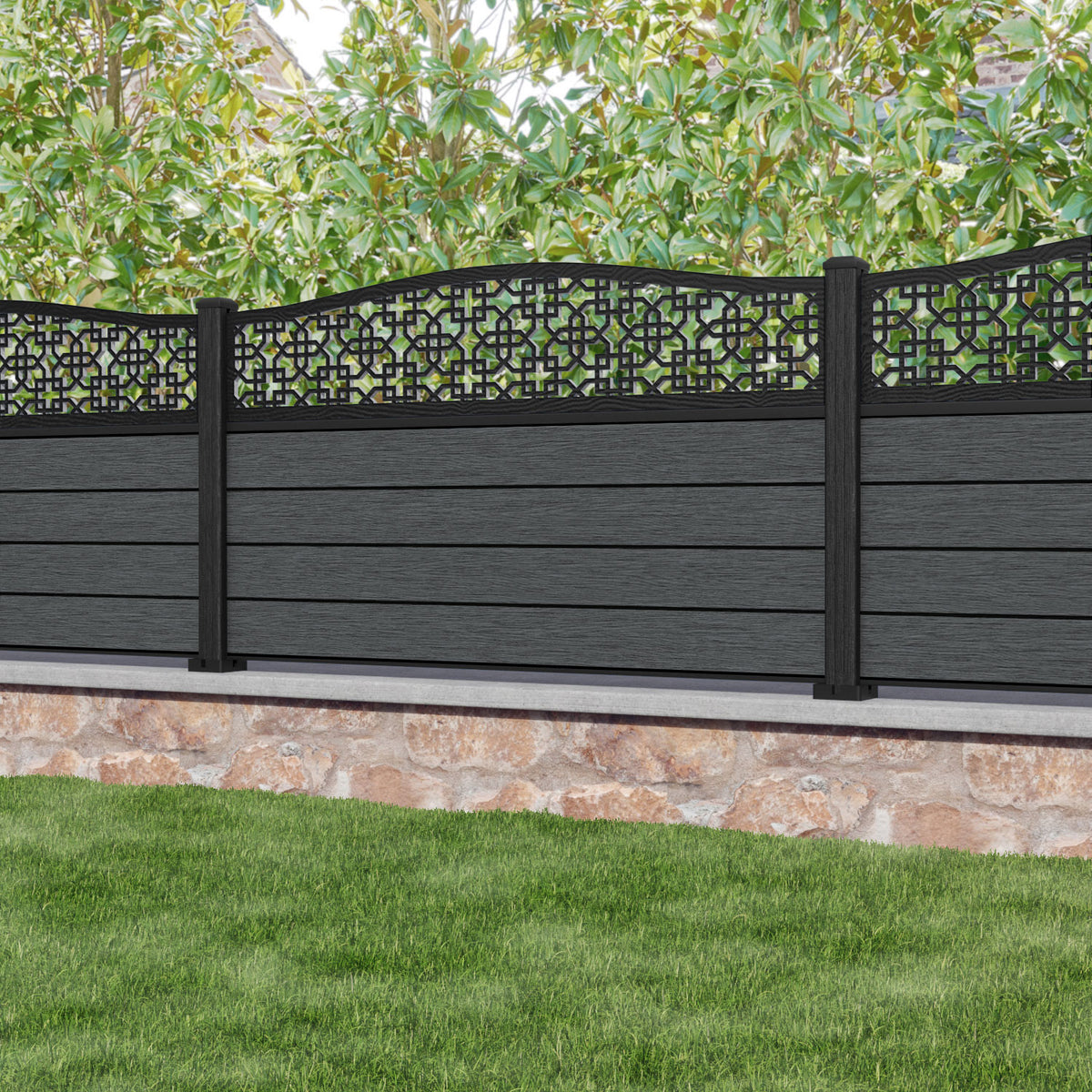 Fusion Zaria Curved Top Fence Panel Dark Grey - with our composite posts
