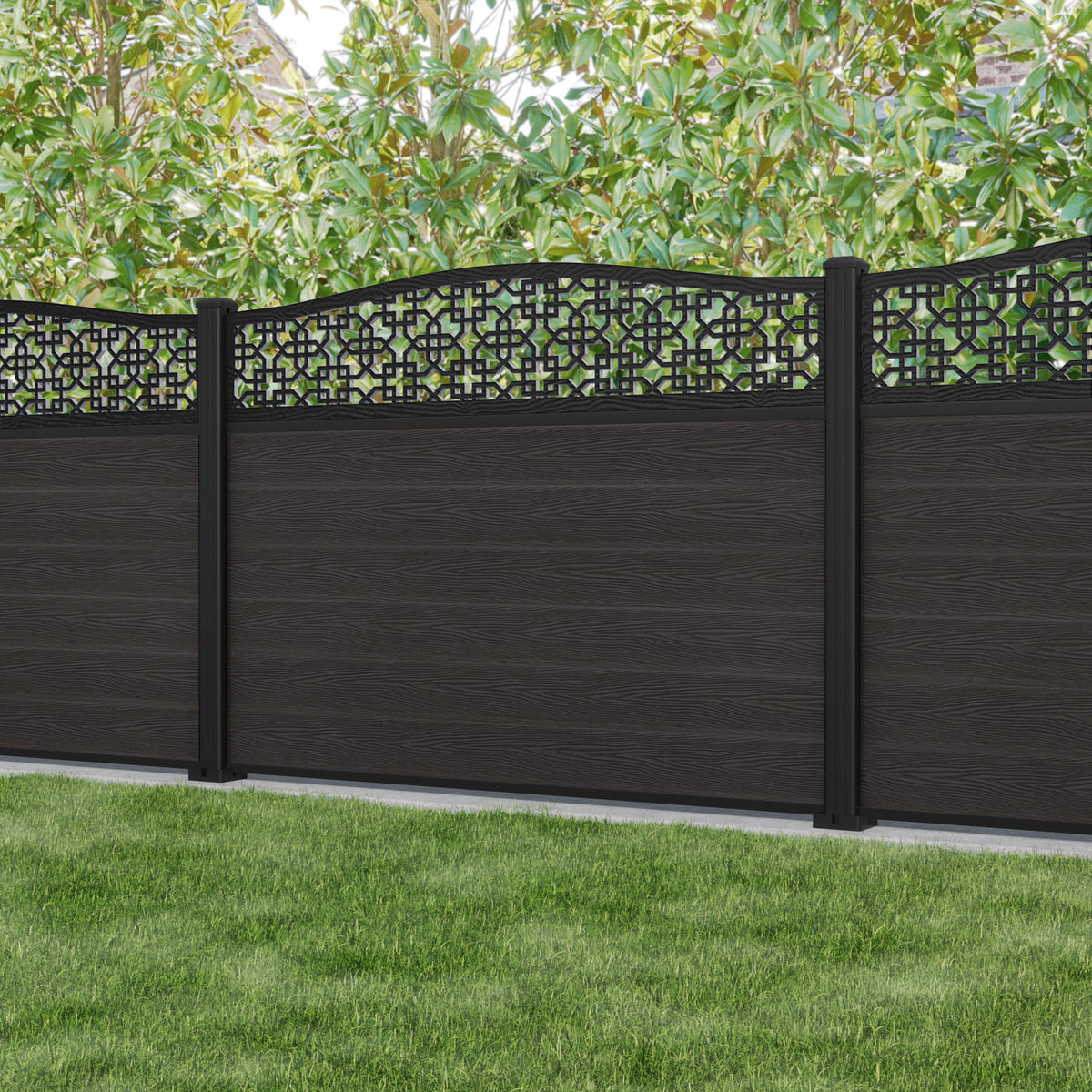 Fusion Zaria Curved Top Fence Panel Dark Oak - with our aluminium posts