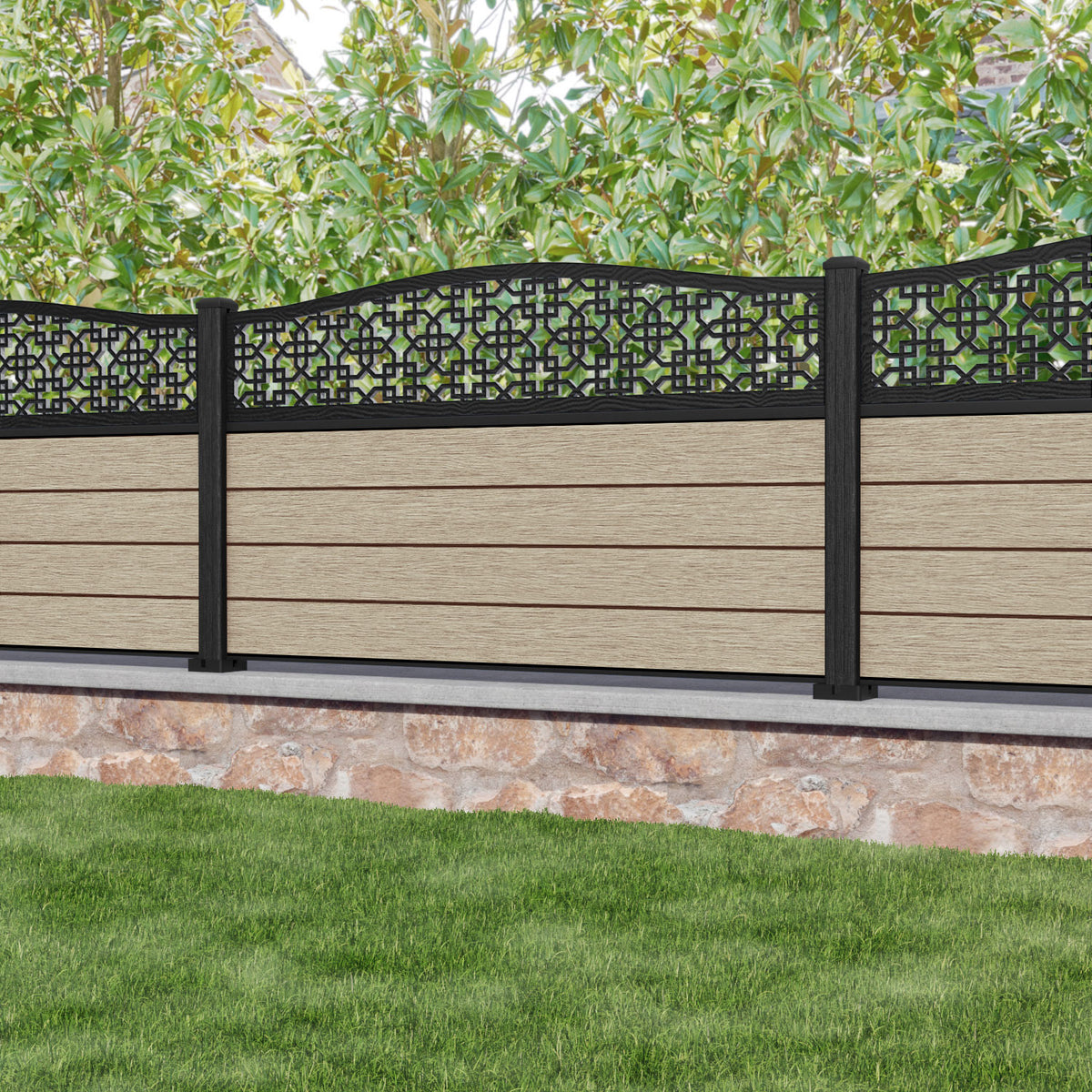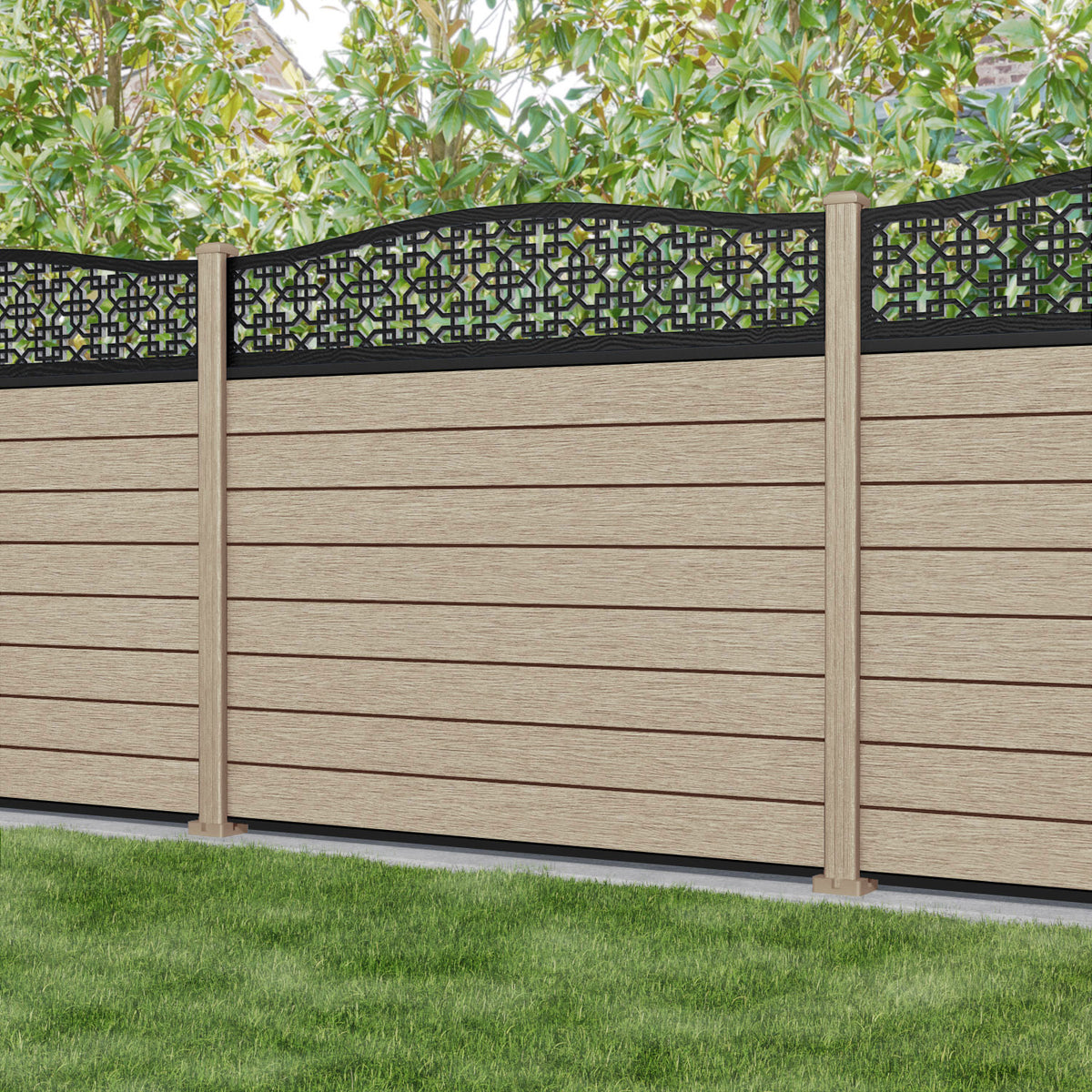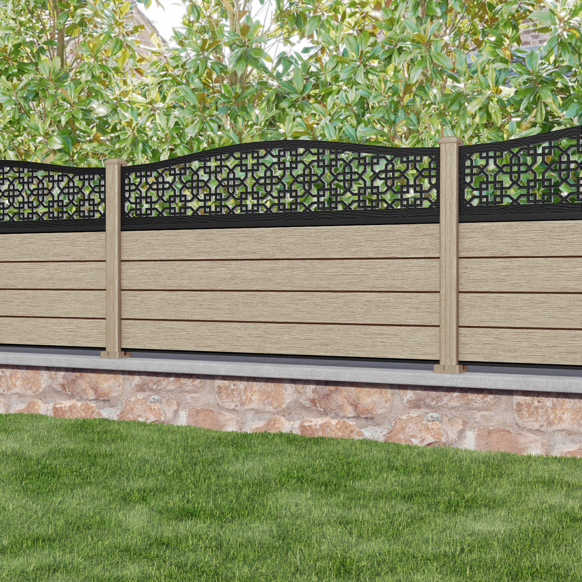 Fusion Zaria Curved Top Fence Panel Light Oak - with our composite posts