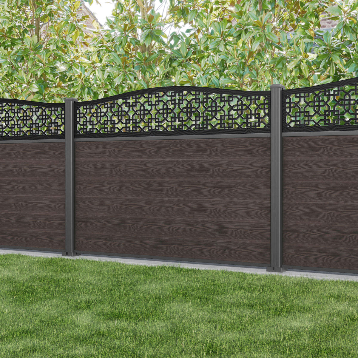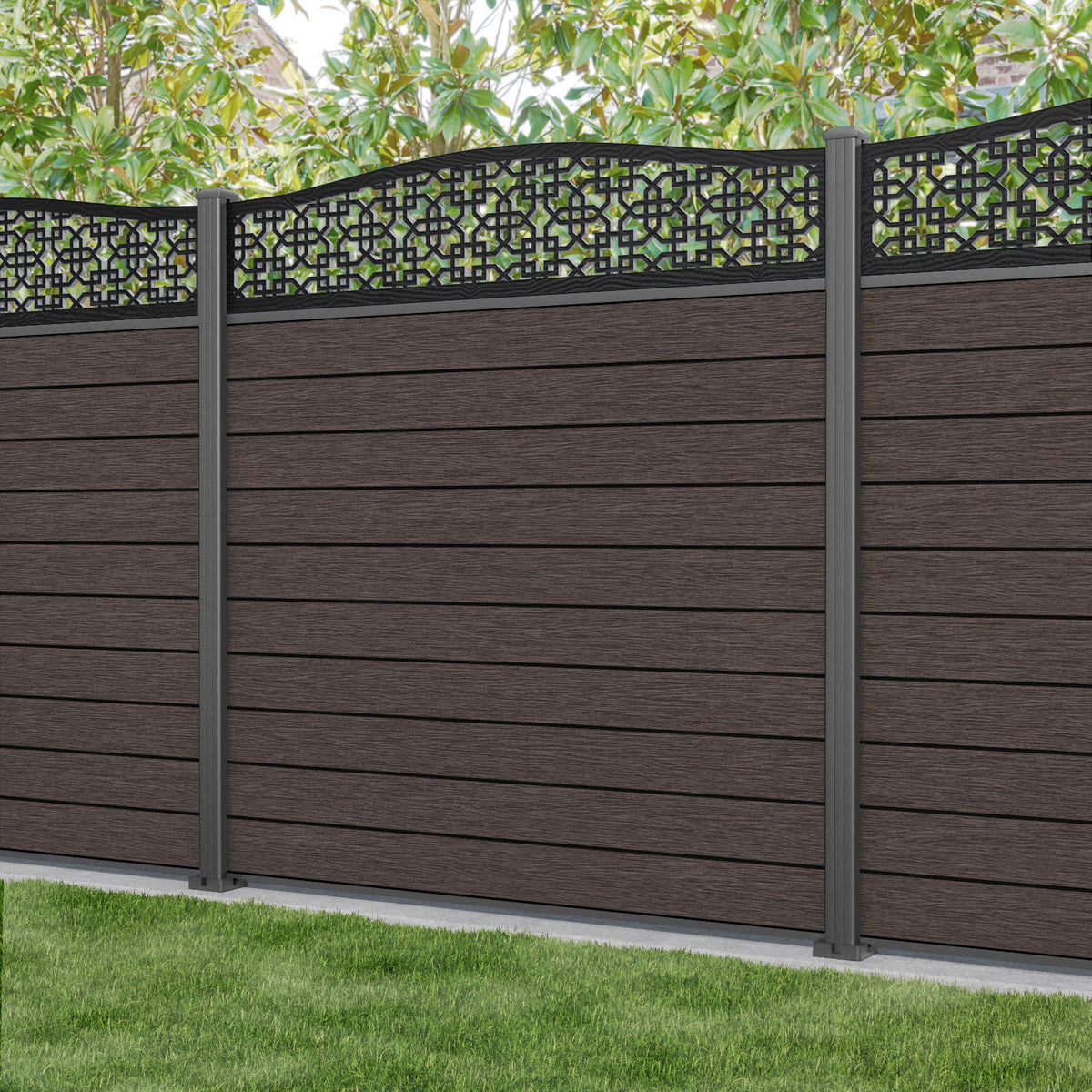 Fusion Zaria Curved Top Fence Panel Mid Brown - with our aluminium posts
