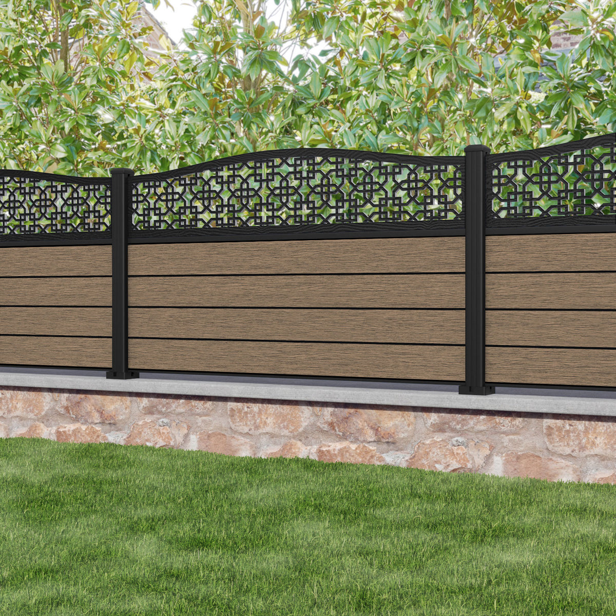 Fusion Zaria Curved Top Fence Panel Teak - with our aluminium posts