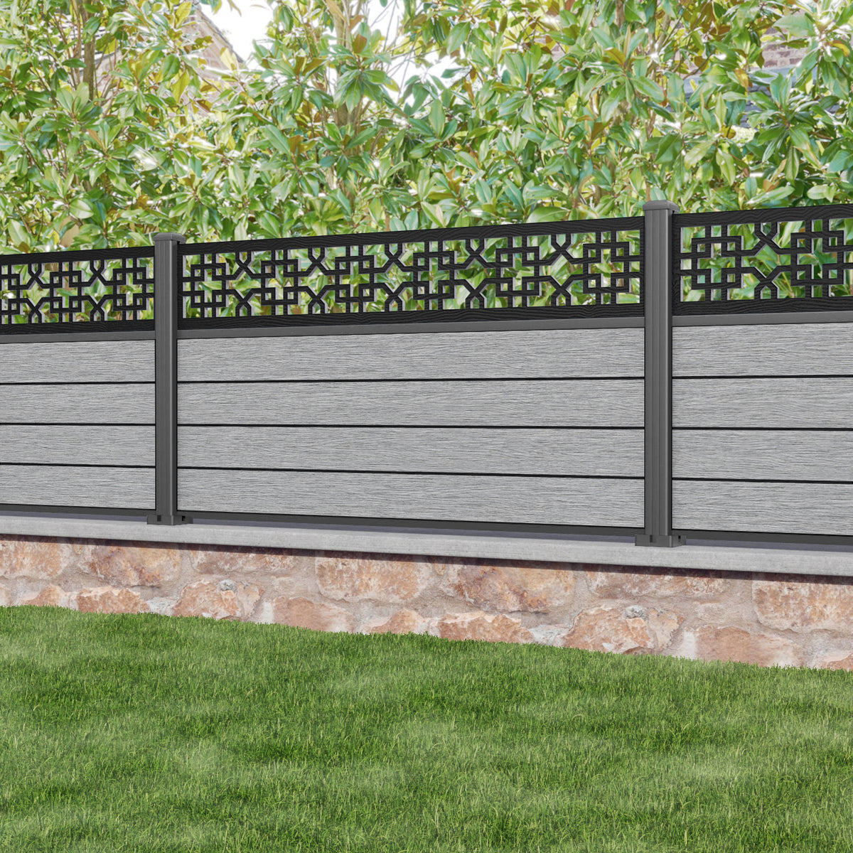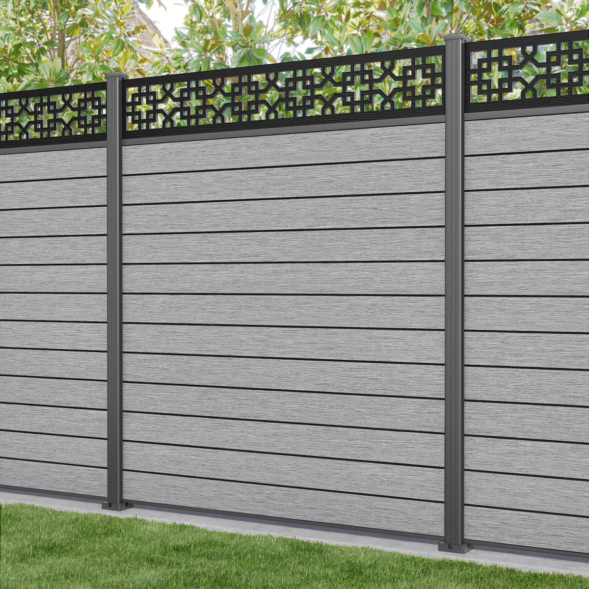 Fusion Zaria Fence Panel Light Grey - with our aluminium posts