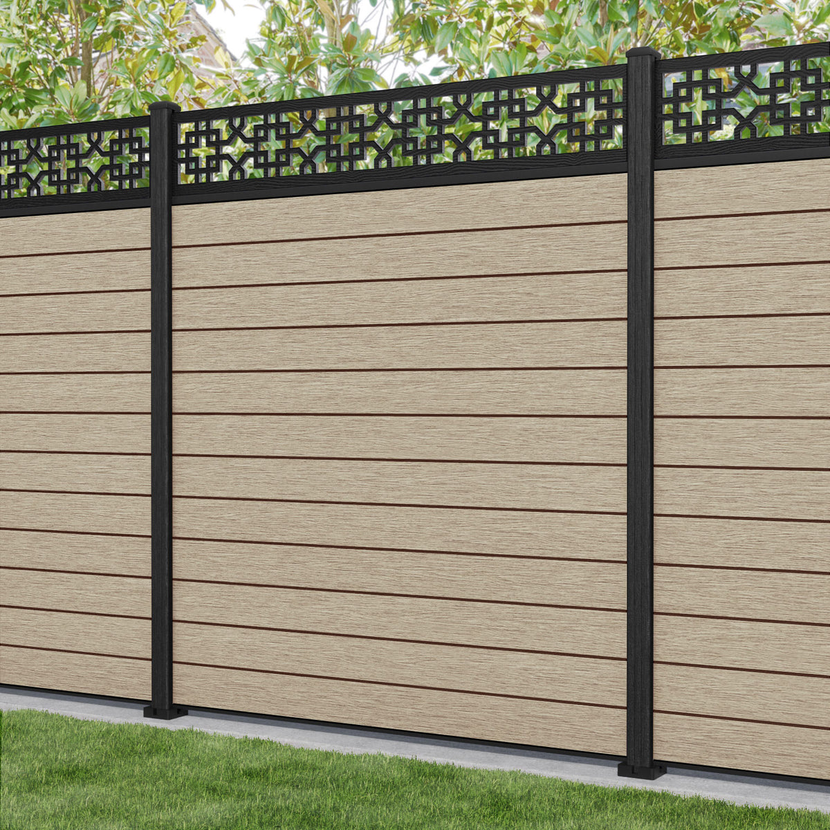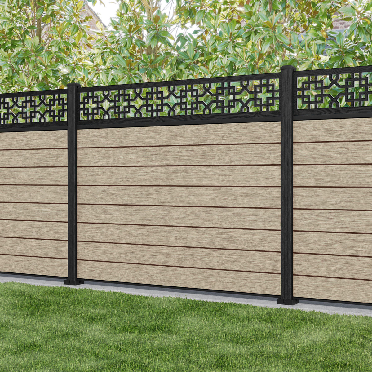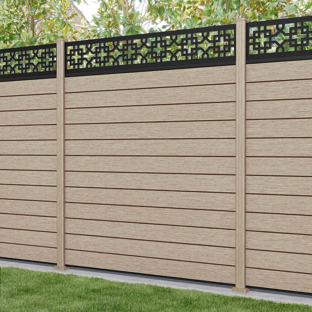 Fusion Zaria Fence Panel Light Oak - with our composite posts