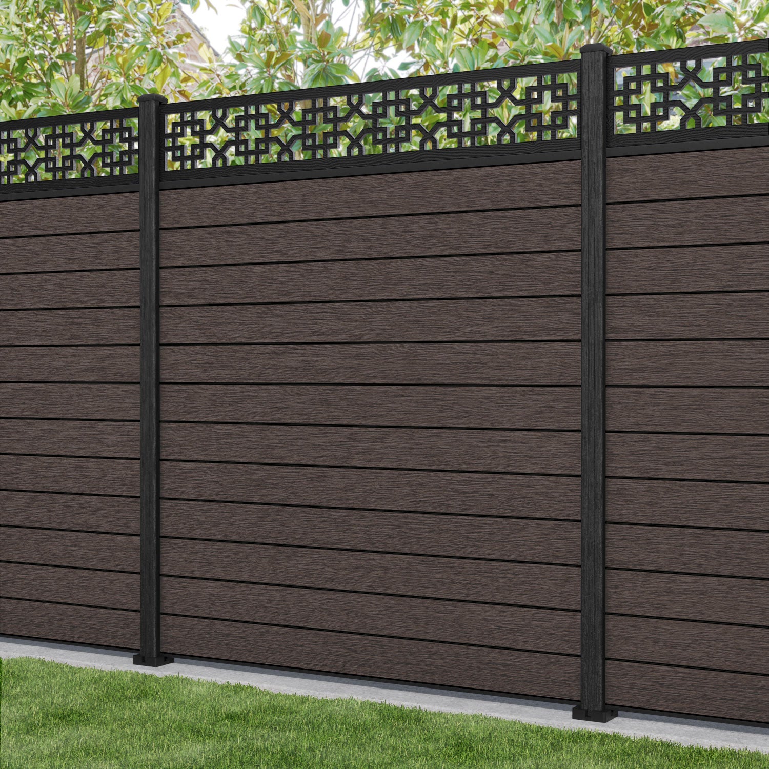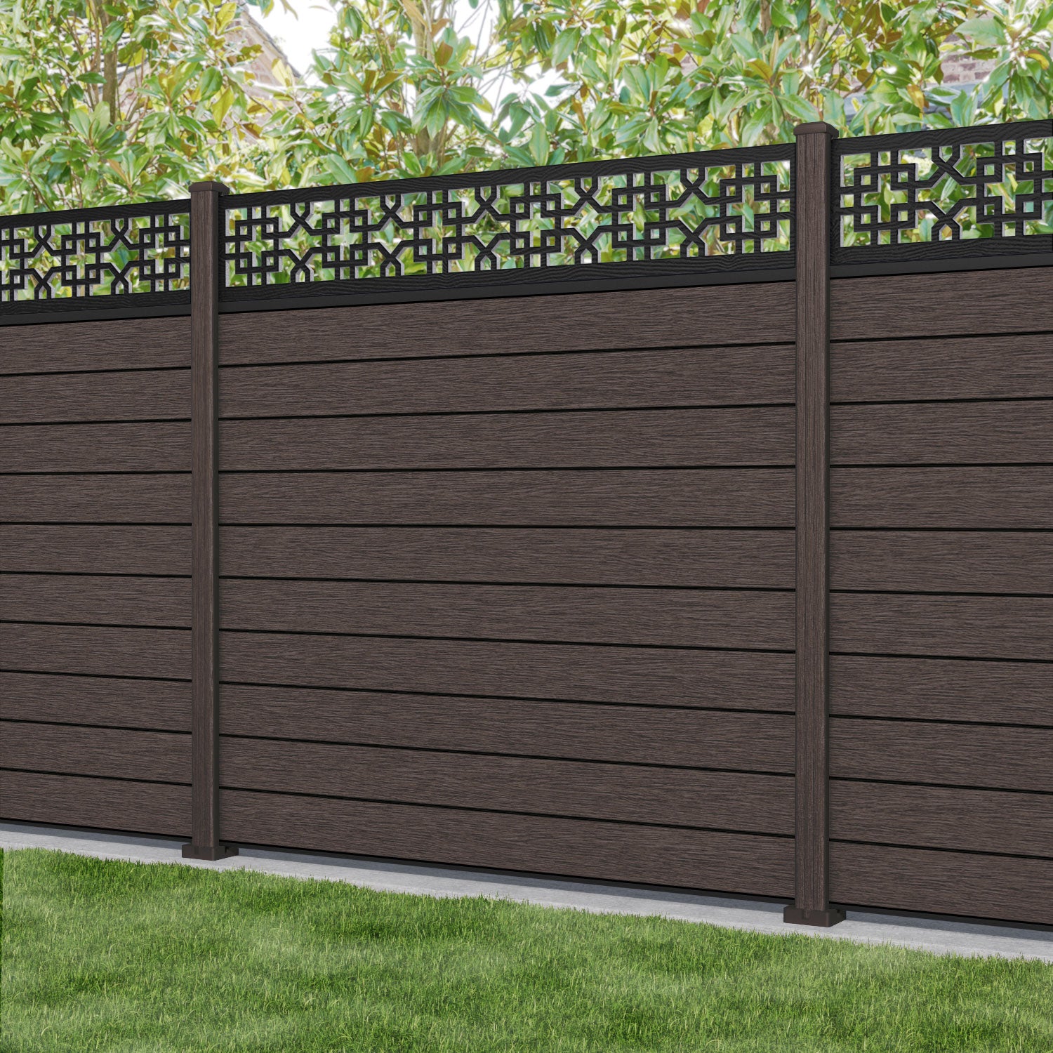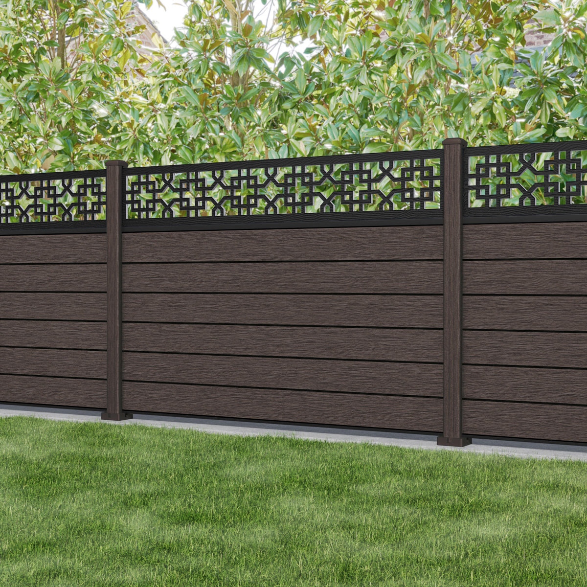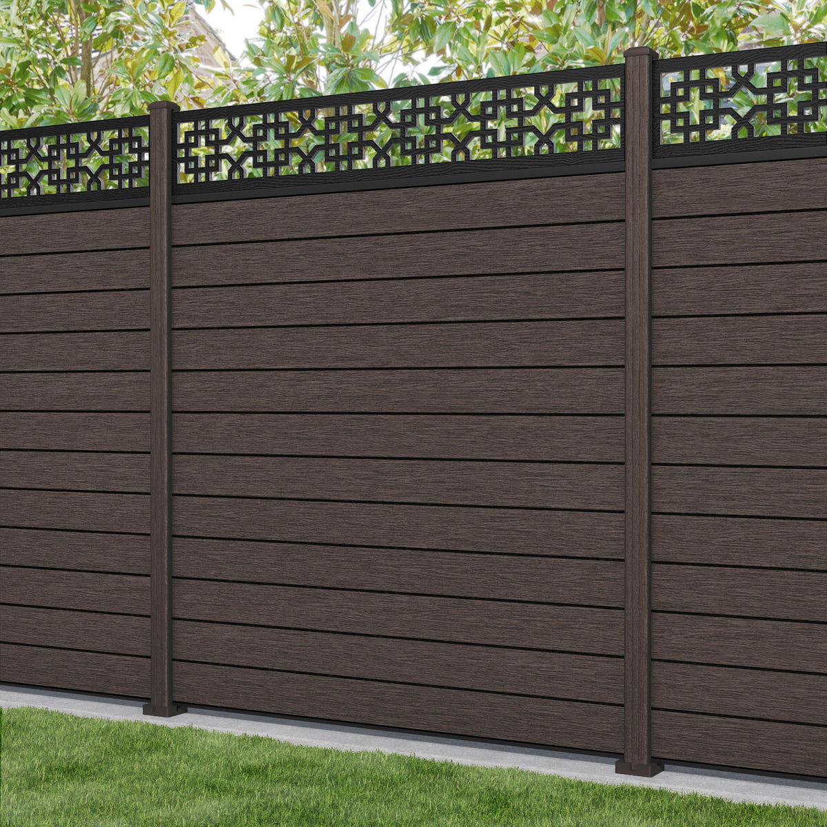 Fusion Zaria Fence Panel Mid Brown - with our composite posts
