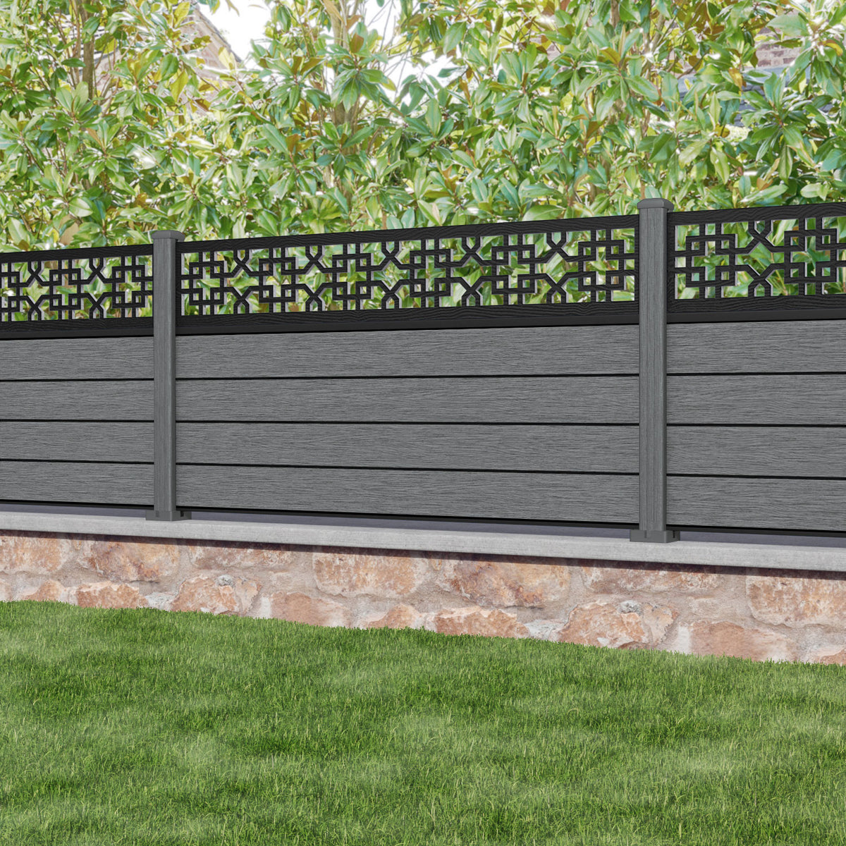 Fusion Zaria Fence Panel Mid Grey - with our composite posts