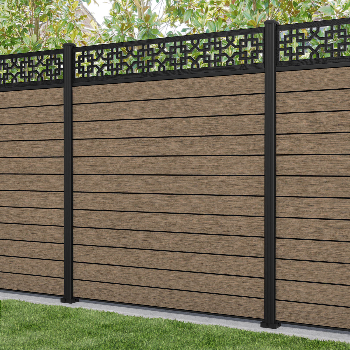 Fusion Zaria Fence Panel Teak - with our aluminium posts