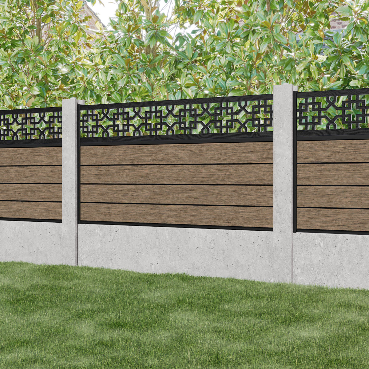 Fusion Zaria Fence Panel Teak - for existing concrete posts