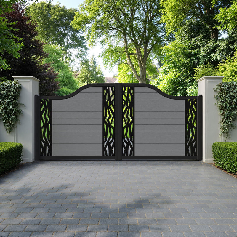 Fusion Zenith Curved Top Driveway Gate Mid Grey - Middle & End Screen