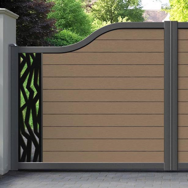 Fusion Zenith Curved Top Driveway Gate Teak - End Screen
