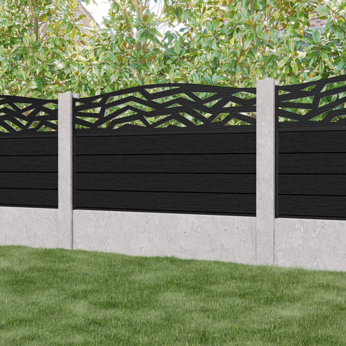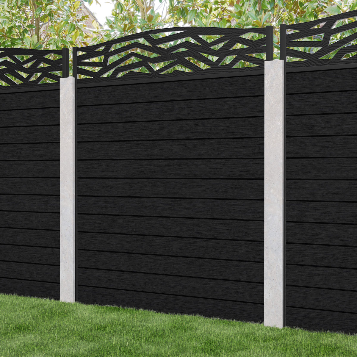 Fusion Zenith Curved Top Fence Panel Black - for existing concrete posts