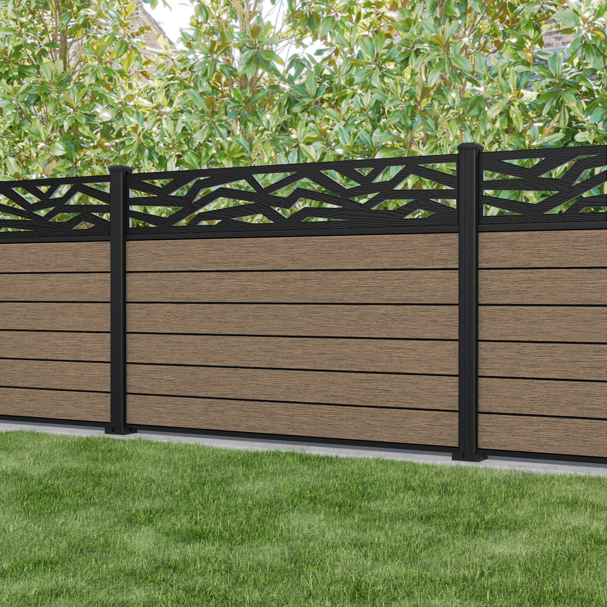 Fusion Zenith Fence Panel Teak - with our aluminium posts