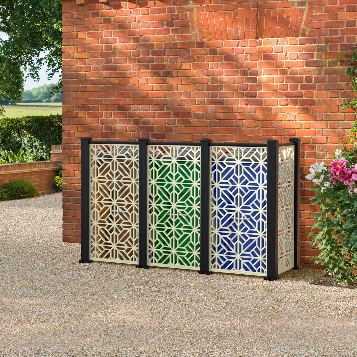 Our bin screens are designed to blend in seamlessly with your outdoor decor, effectively hiding the bins from view. We offer a variety of elegant styles, in 3 different sizes and 4 chic colours, making our premium bin screening system the ultimate choice for those who desire a luxurious and sophisticated outdoor experience.
