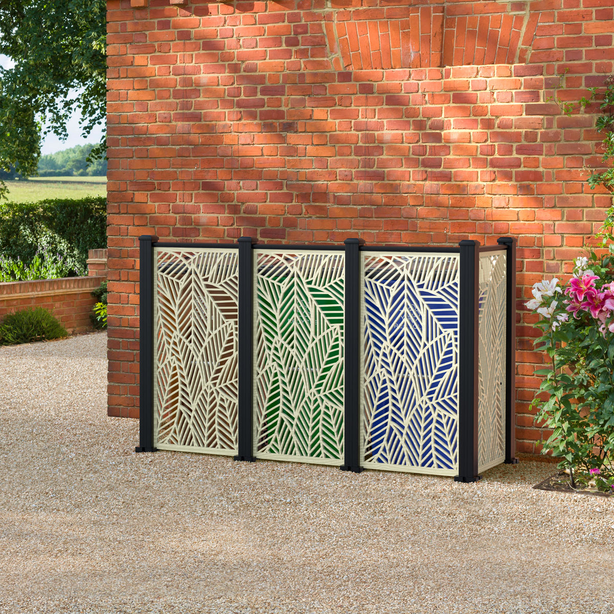 Our bin screens are designed to blend in seamlessly with your outdoor decor, effectively hiding the bins from view. We offer a variety of elegant styles, in 3 different sizes and 4 chic colours, making our premium bin screening system the ultimate choice for those who desire a luxurious and sophisticated outdoor experience.