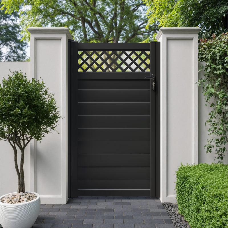 Pair your gate with our eco-friendly composite or aluminium slats for a seamless match to our fencing collections, ensuring a stylish and cohesive look.