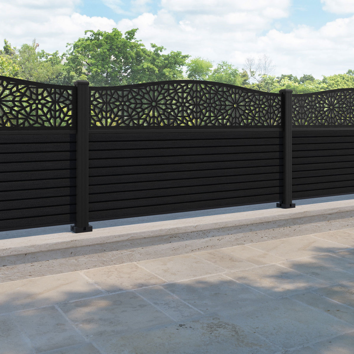 Hudson Alnara Curved Top Fence Panel Black - with our aluminium posts