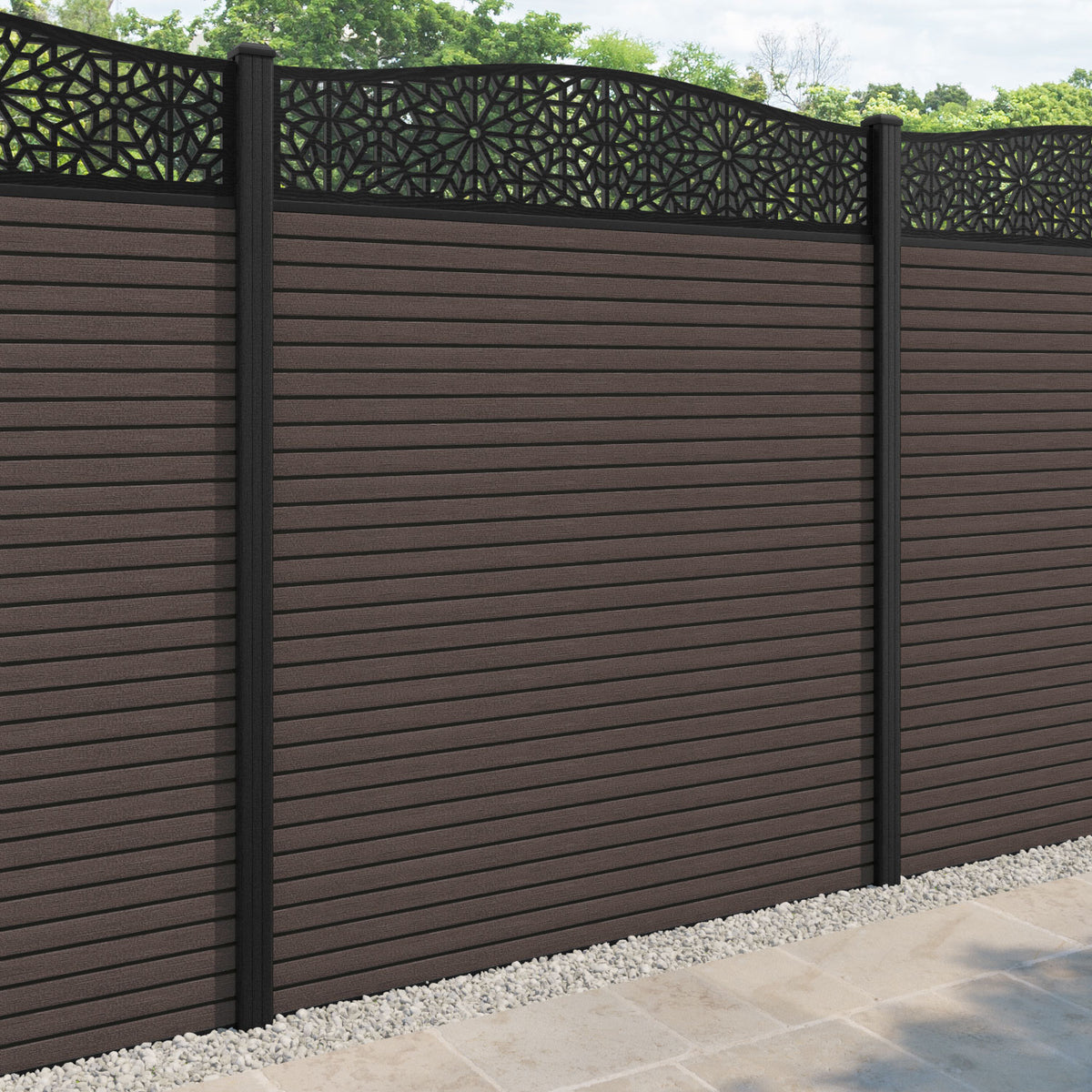 Hudson Alnara Curved Top Fence Panel Mid Brown - with our composite posts