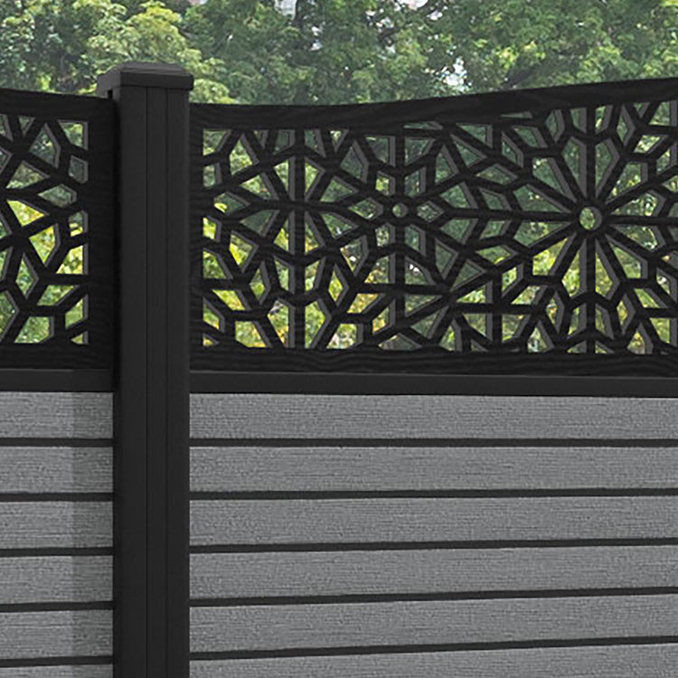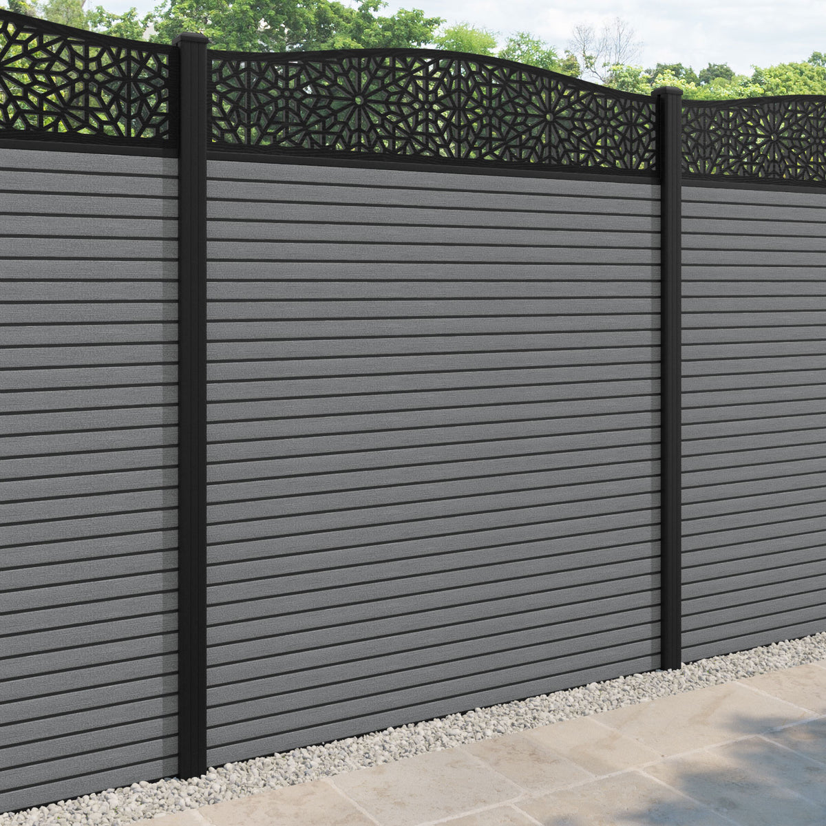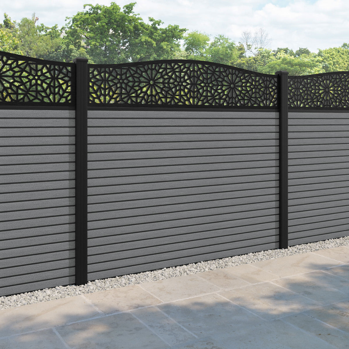 Hudson Alnara Curved Top Fence Panel Mid Grey - with our aluminium posts