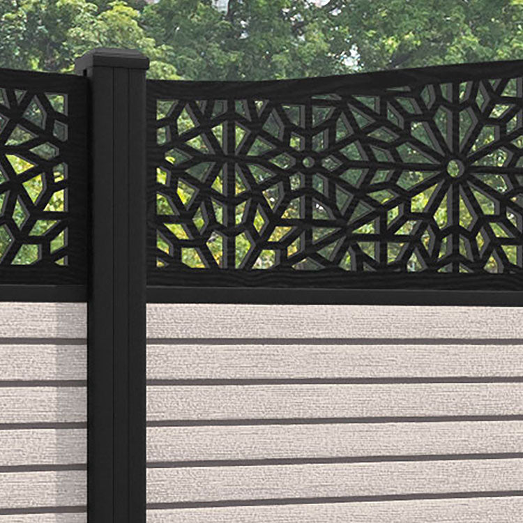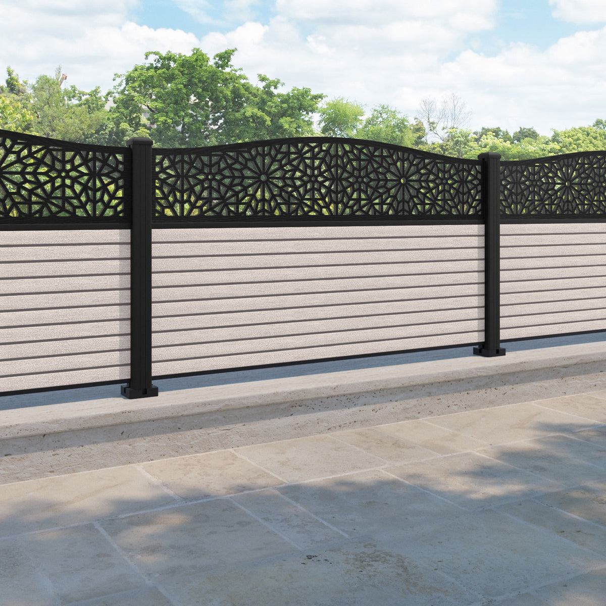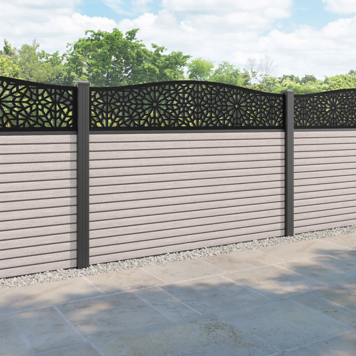 Hudson Alnara Curved Top Fence Panel Mid Stone - with our aluminium posts