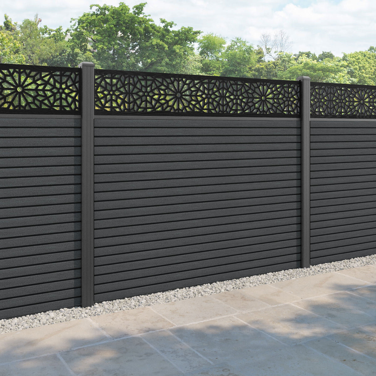 Hudson Alnara Fence Panel Dark Grey - with our aluminium posts