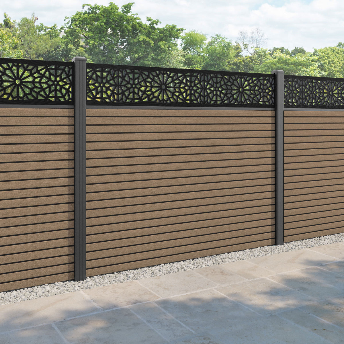 Hudson Alnara Fence Panel Teak - with our aluminium posts