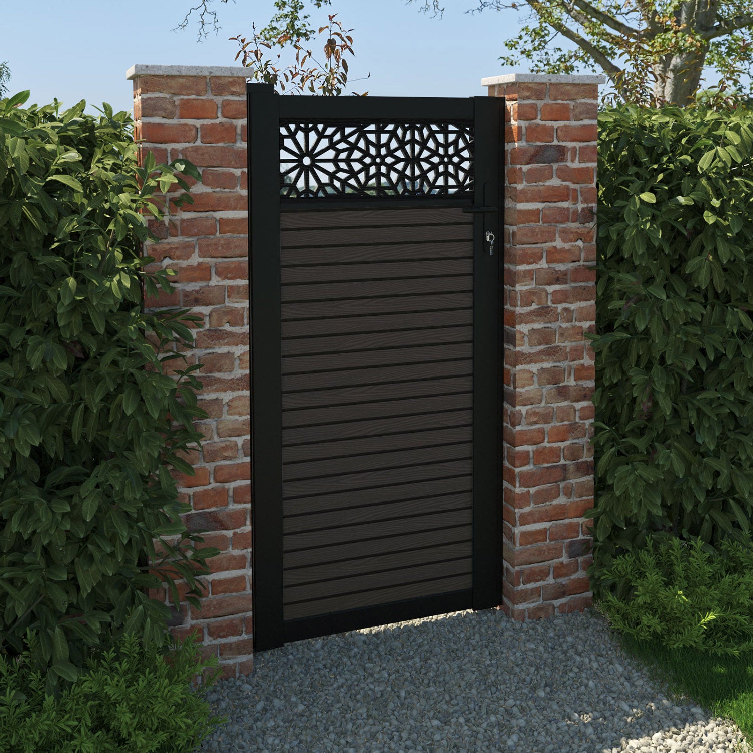 Pair your gate with our eco-friendly composite or aluminium slats for a seamless match with our fencing collections, ensuring a stylish and cohesive look.