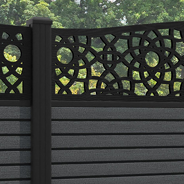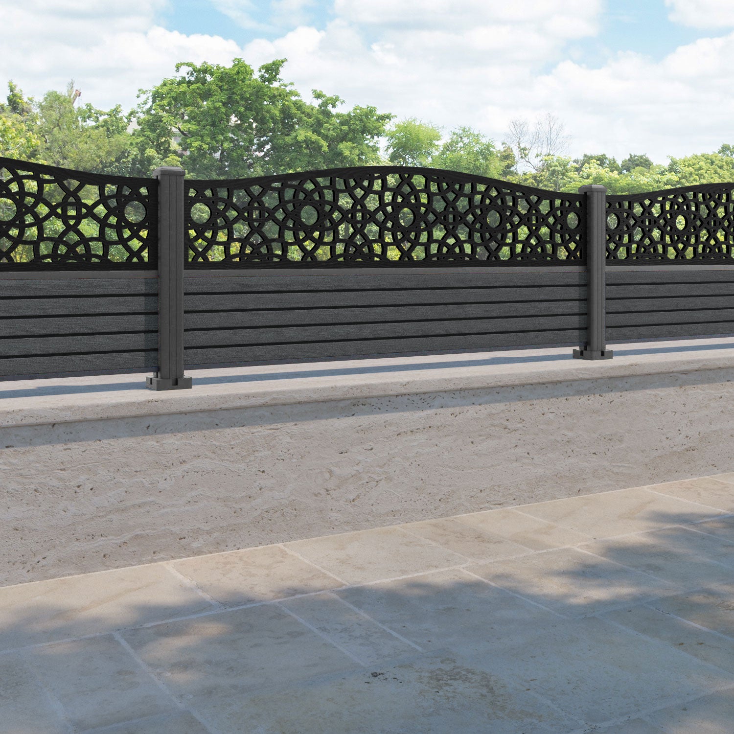 Hudson Ambar Curved Top Fence Panel Dark Grey - with our aluminium posts