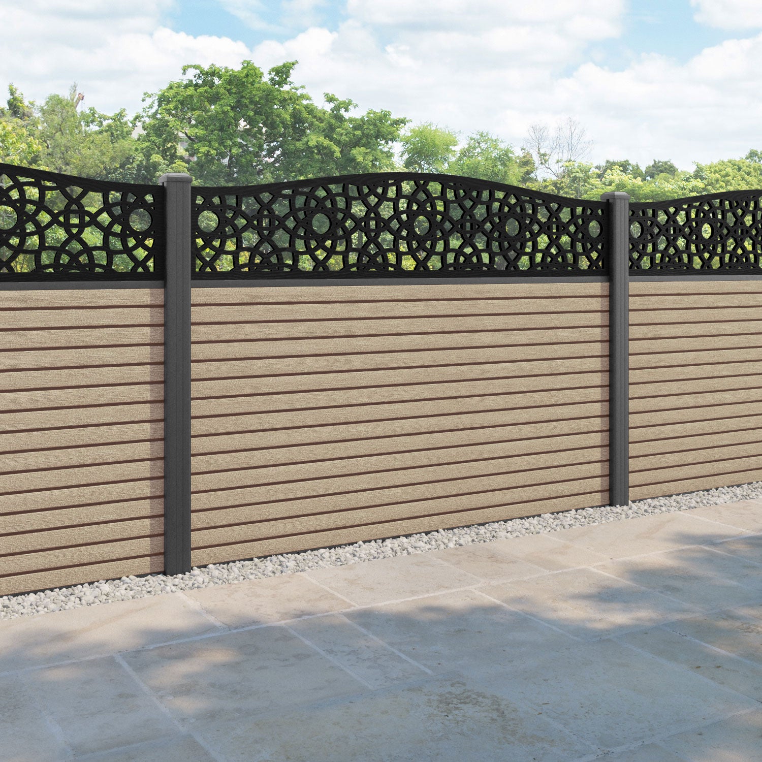 Hudson Ambar Curved Top Fence Panel Light Oak - with our aluminium posts