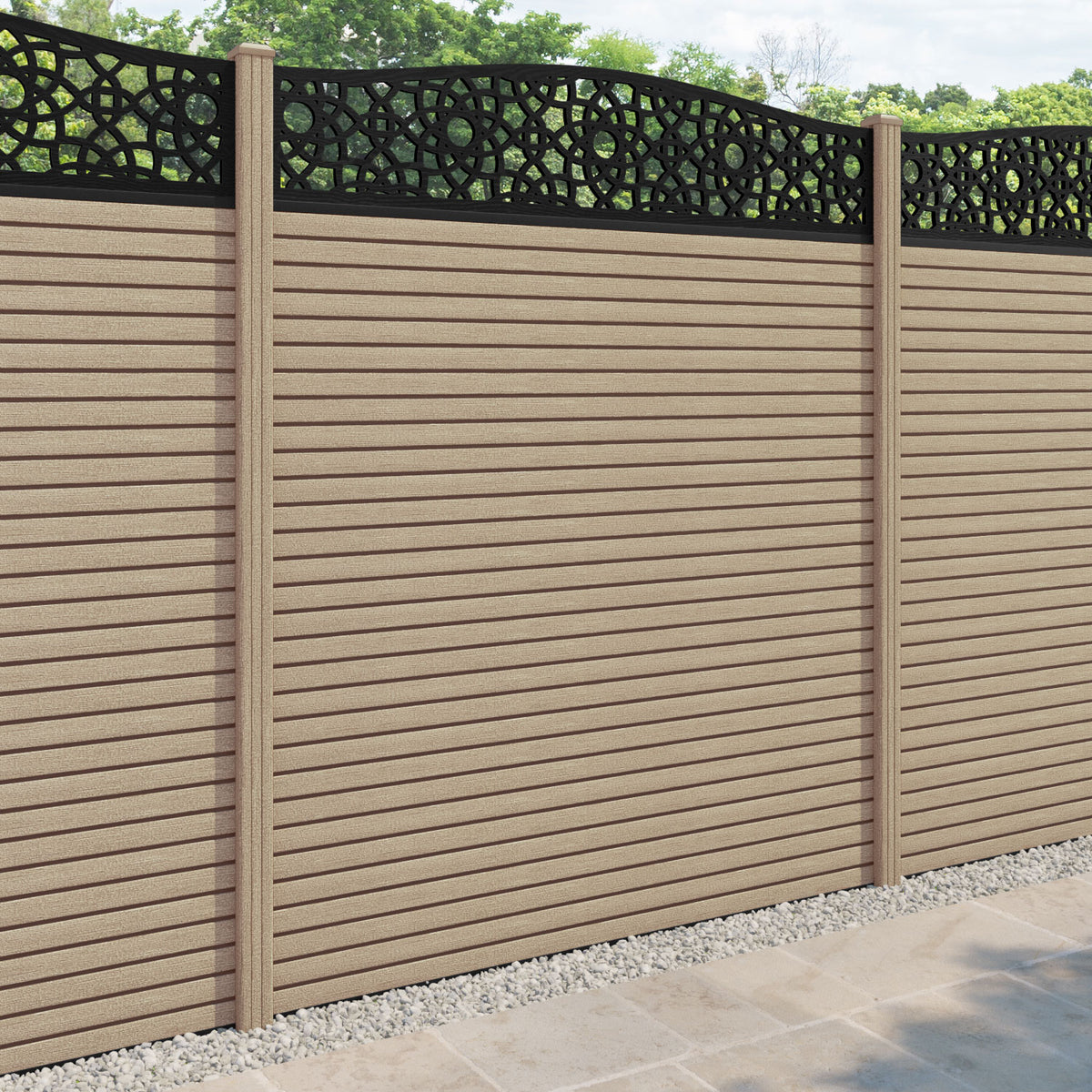 Hudson Ambar Curved Top Fence Panel Light Oak - with our composite posts