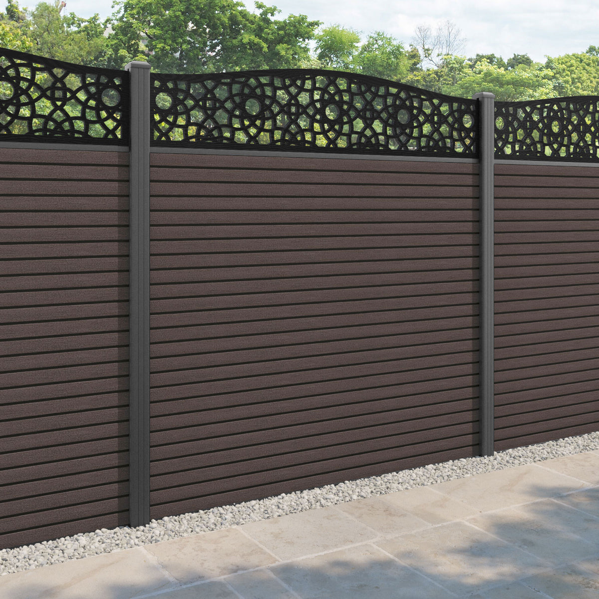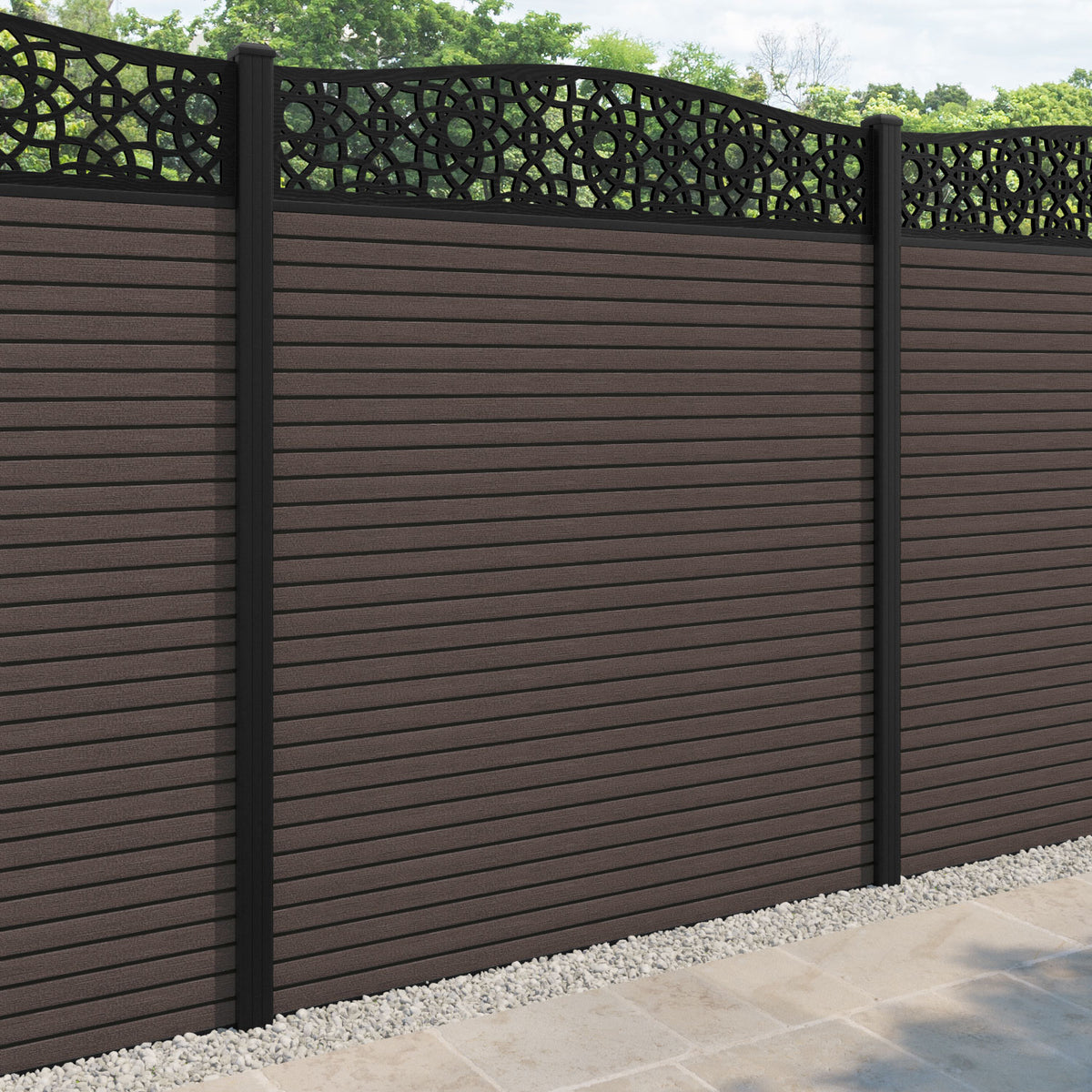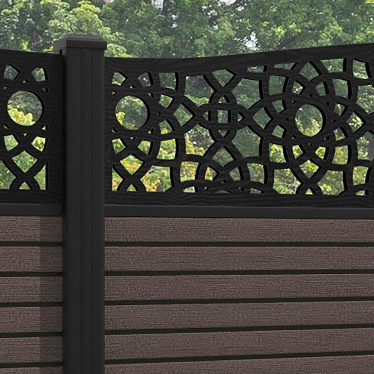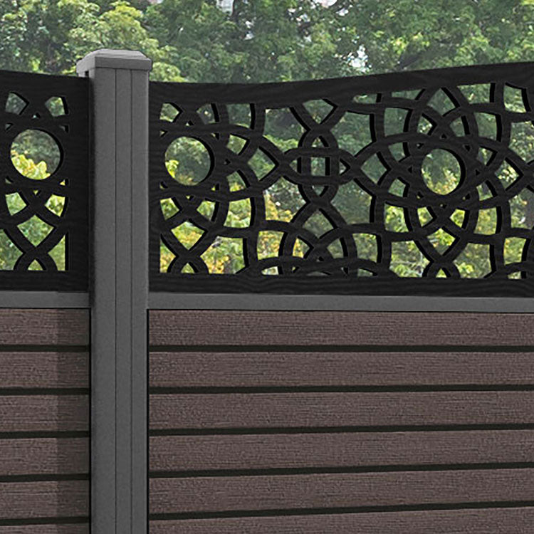Hudson Ambar Curved Top Fence Panel Mid Brown - with our aluminium posts