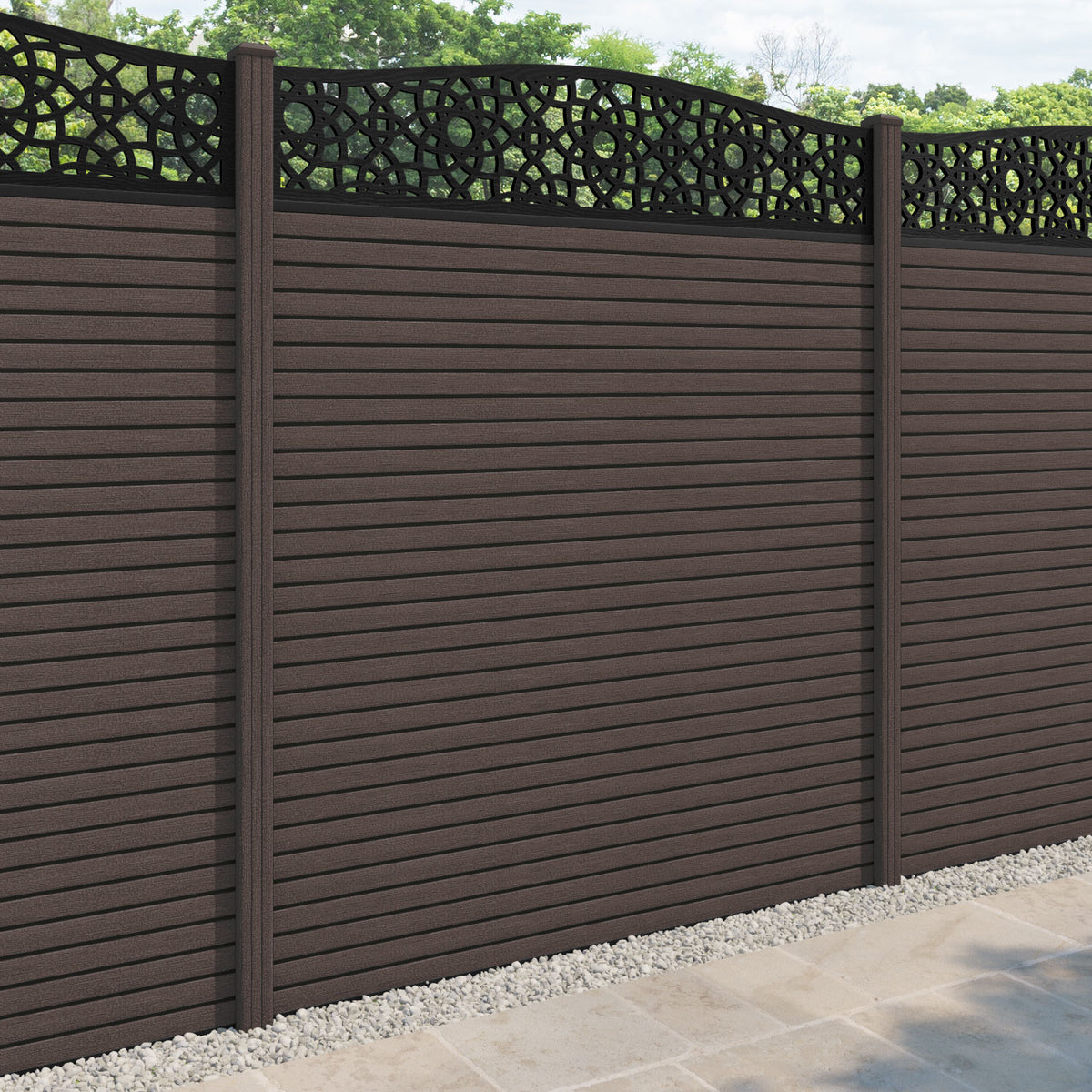 Hudson Ambar Curved Top Fence Panel Mid Brown - with our composite posts