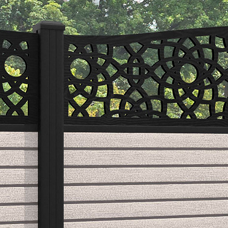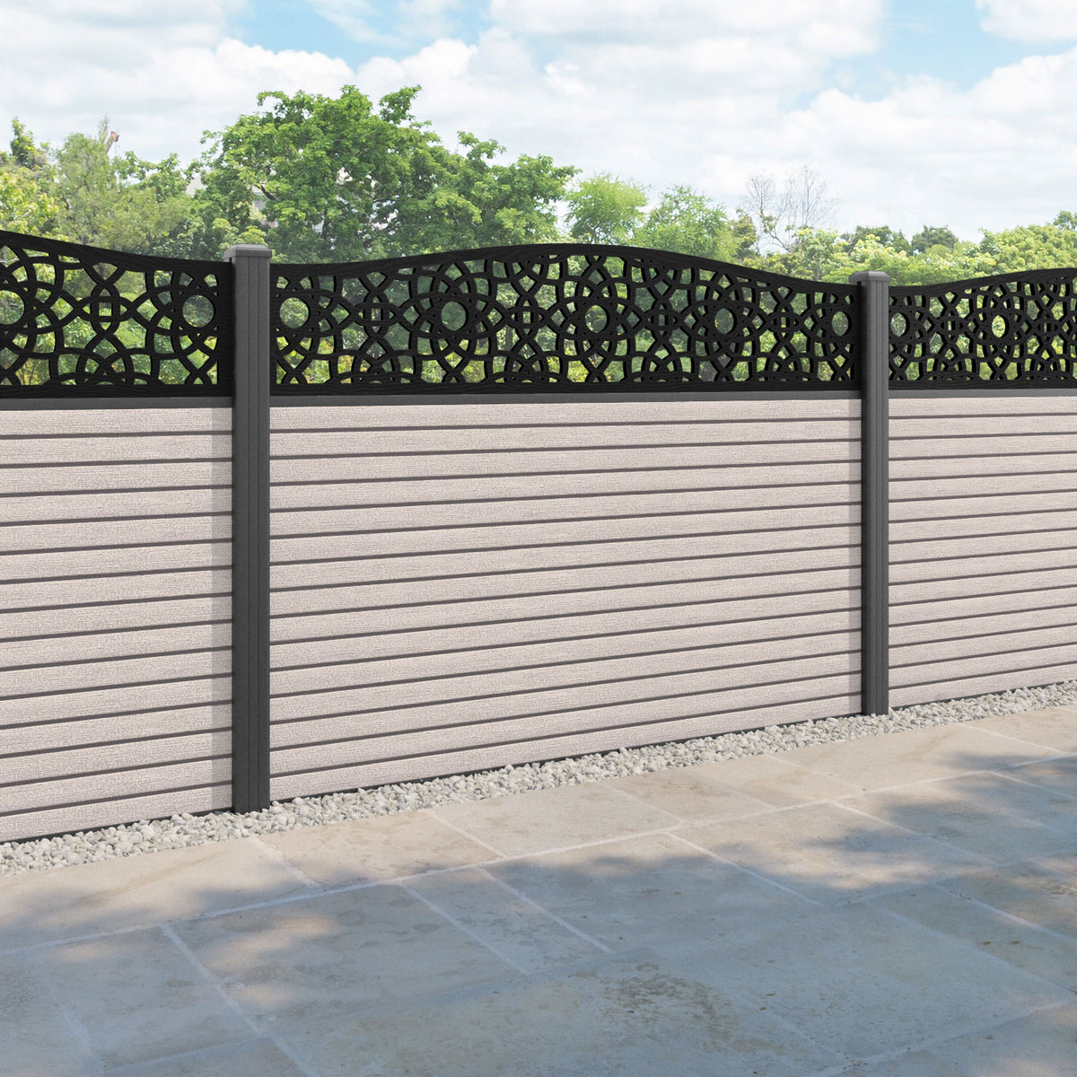 Hudson Ambar Curved Top Fence Panel Mid Stone - with our aluminium posts