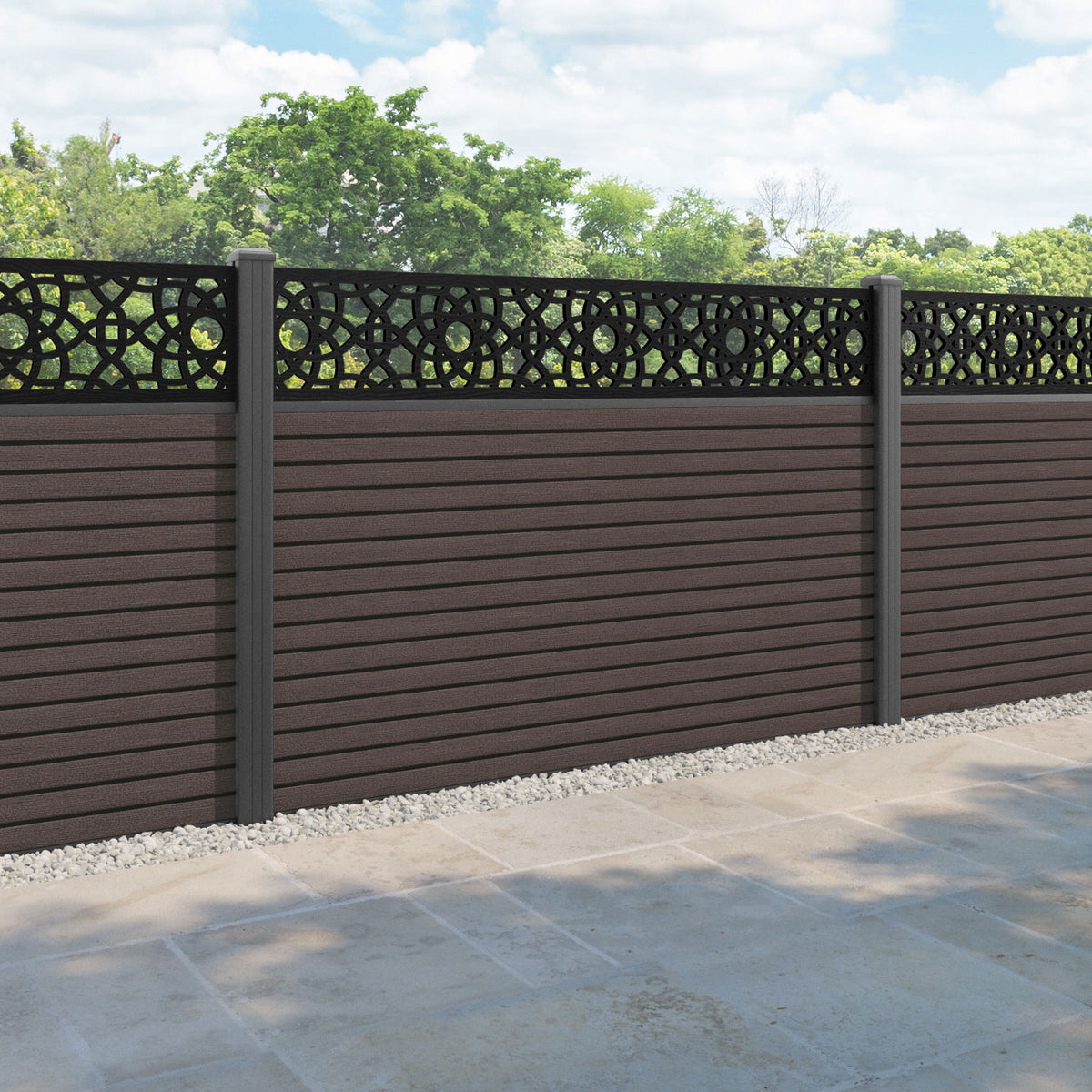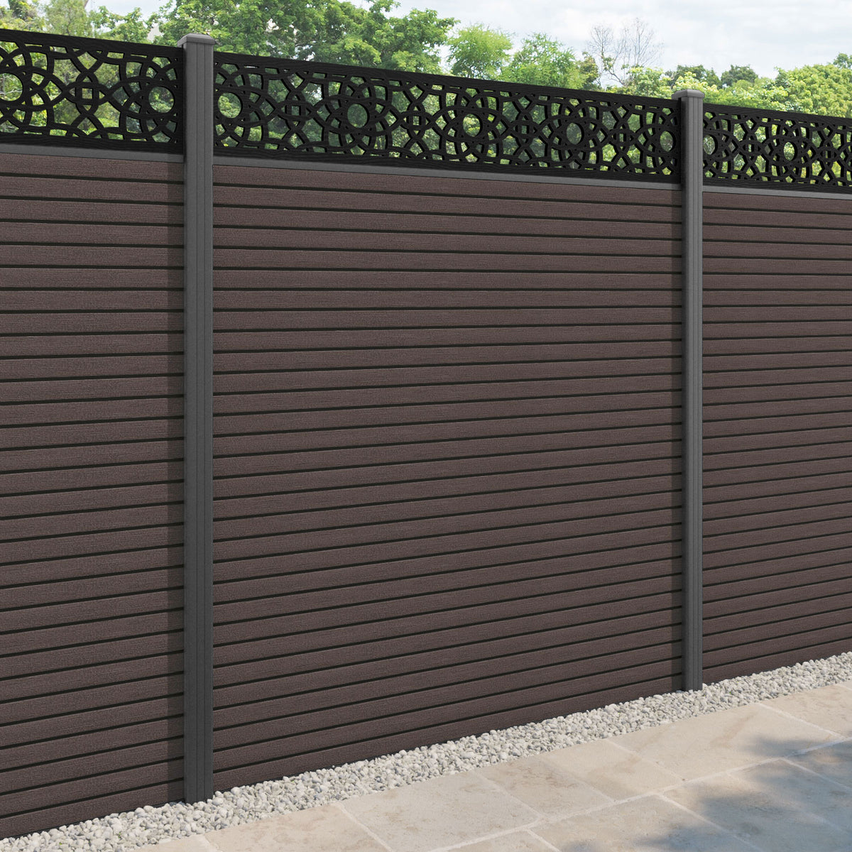 Hudson Ambar Fence Panel Mid Brown - with our aluminium posts