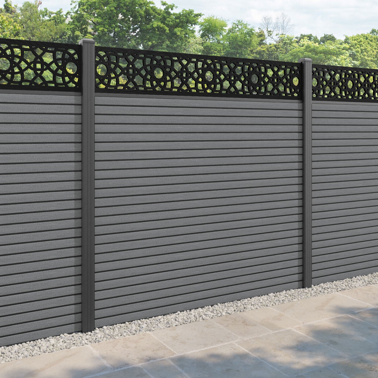 Hudson Ambar Fence Panel Mid Grey - with our aluminium posts