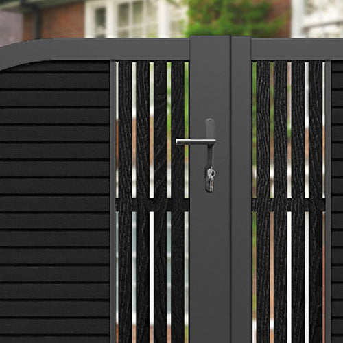 Pair your gate with our eco-friendly composite or aluminium slats for a seamless match with our fencing collections, ensuring a stylish and cohesive look.