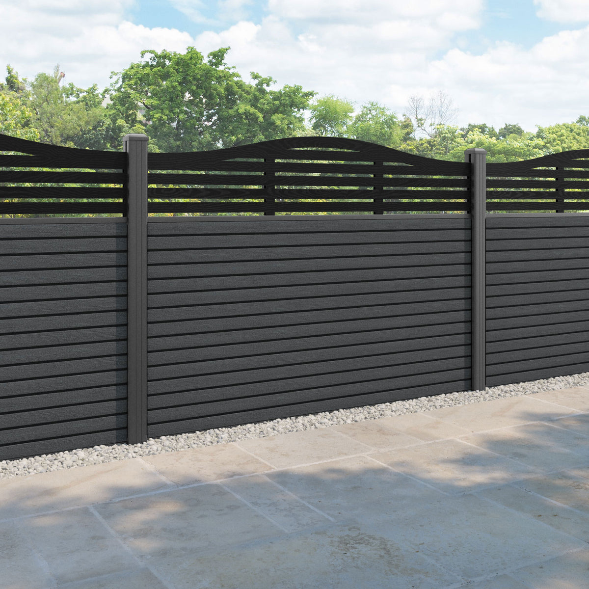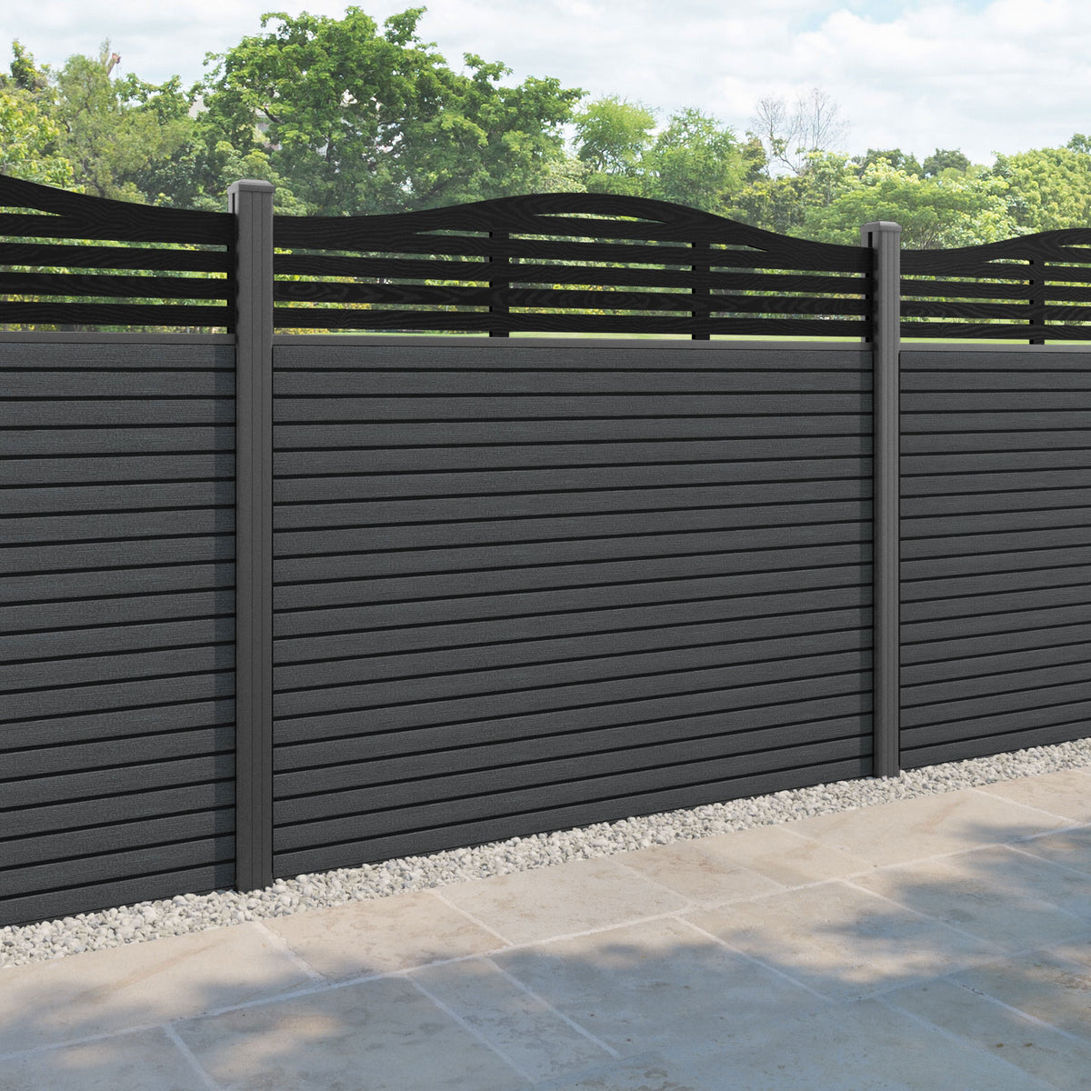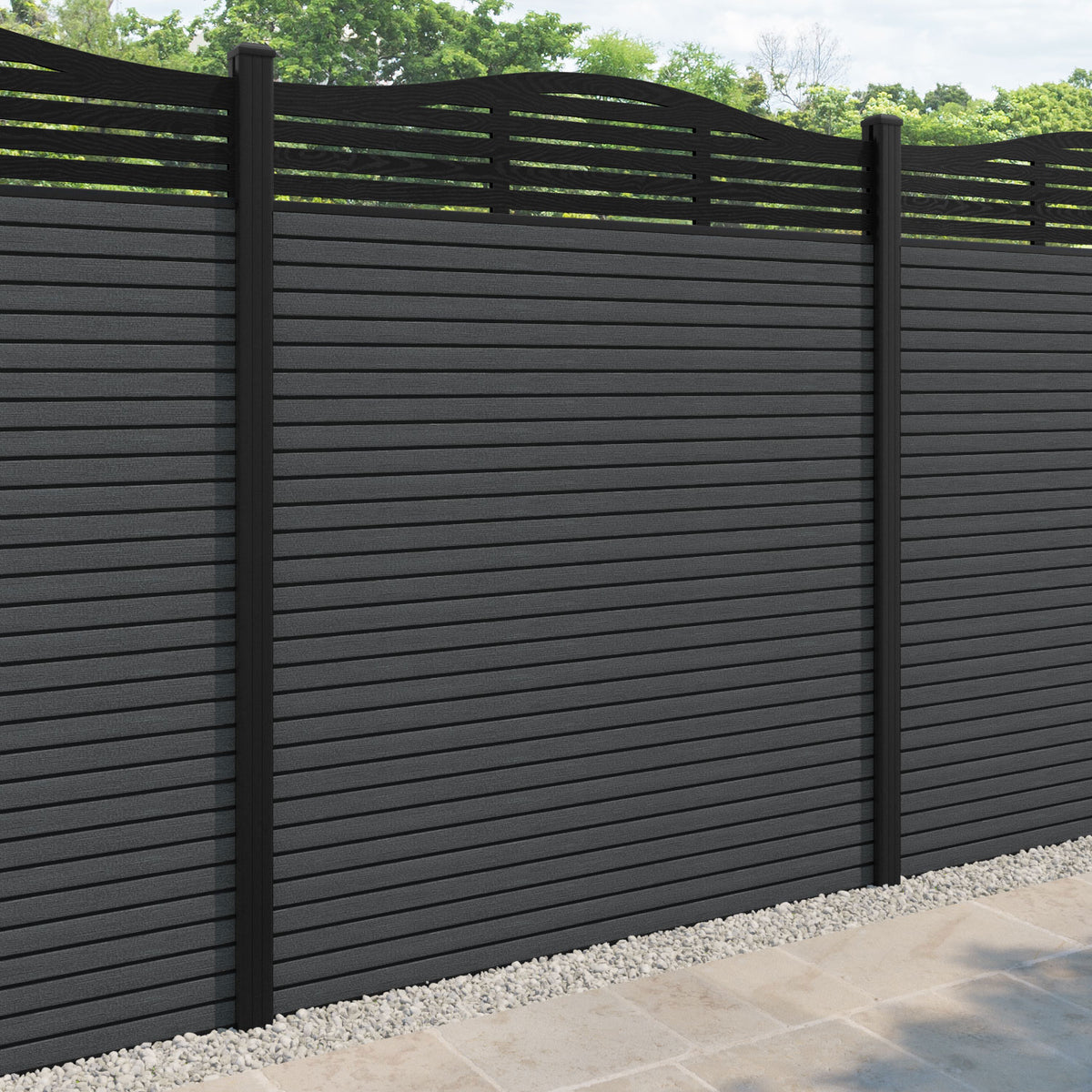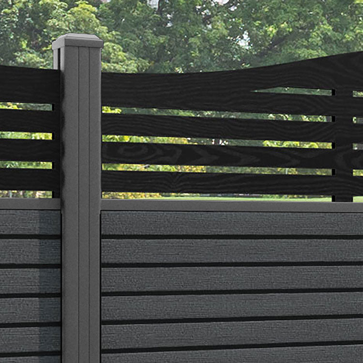 Hudson Aspen Curved Top Fence Panel Dark Grey - with our aluminium posts