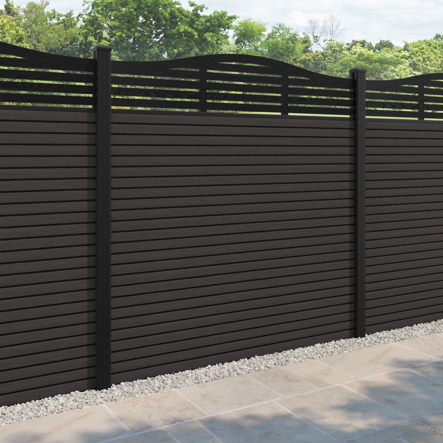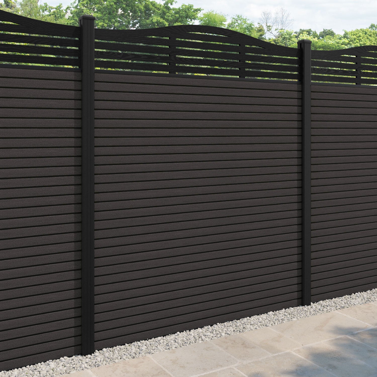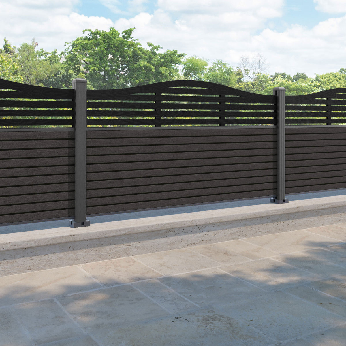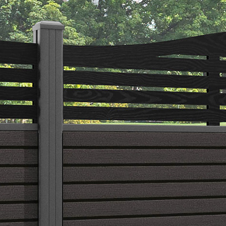 Hudson Aspen Curved Top Fence Panel Dark Oak - with our aluminium posts