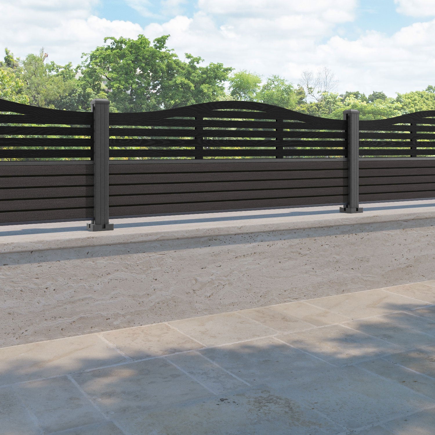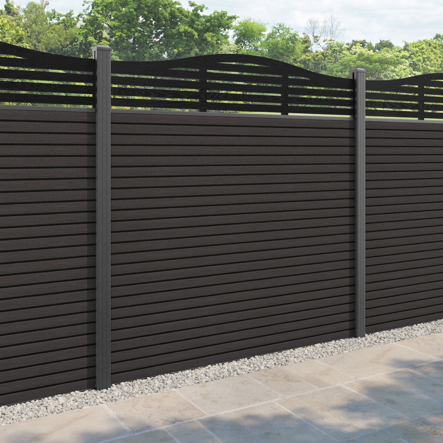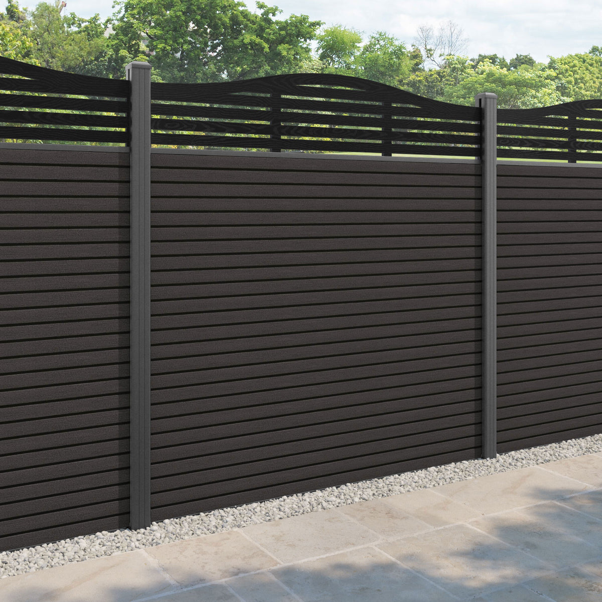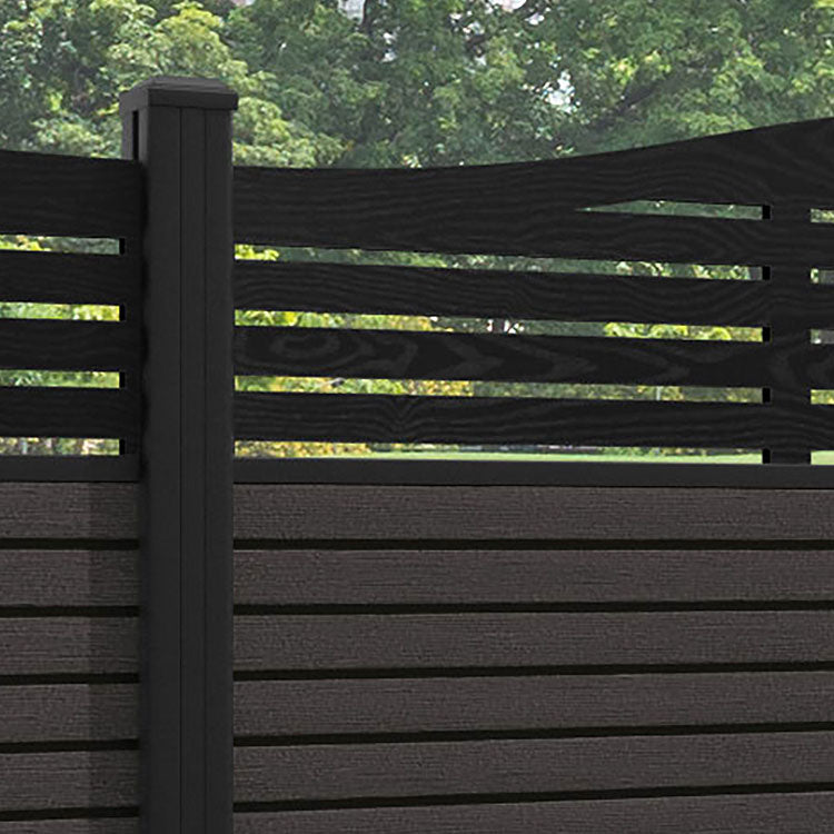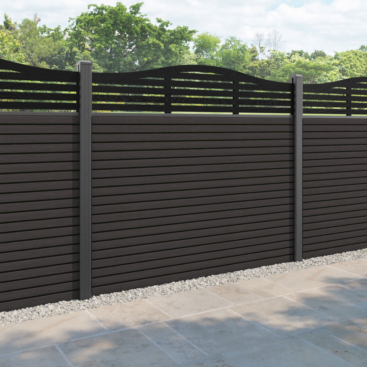 Hudson Aspen Curved Top Fence Panel Dark Oak - with our aluminium posts