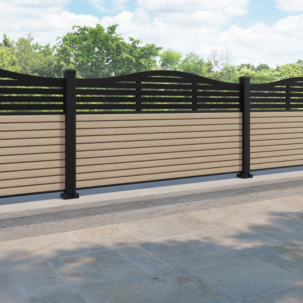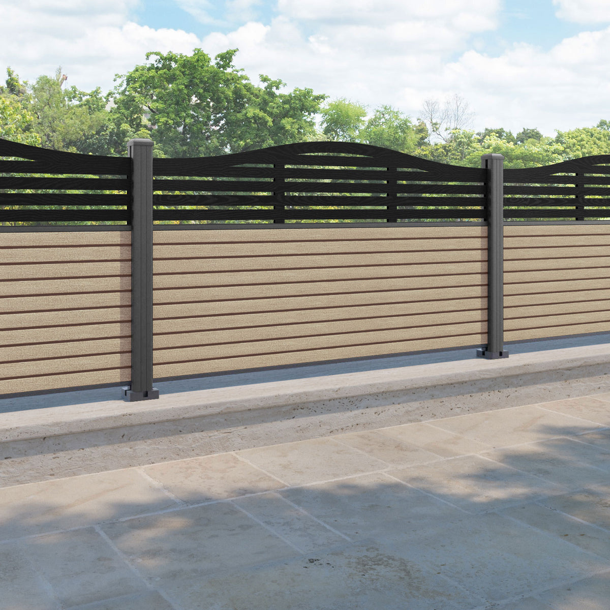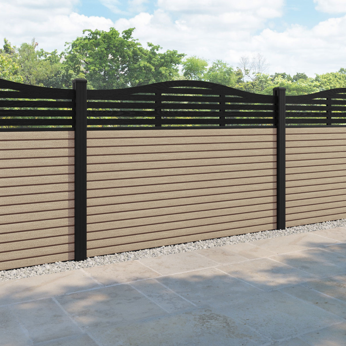 Hudson Aspen Curved Top Fence Panel Light Oak - with our aluminium posts